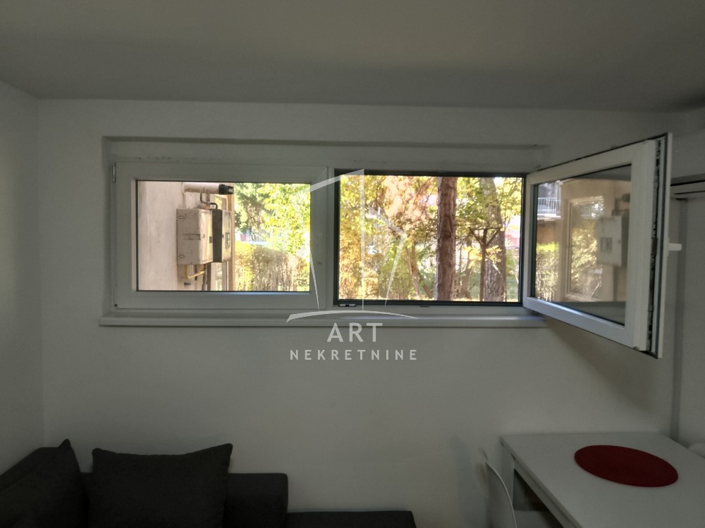 Jednostrano orjentisan sa pogledom na zelenu dvorišnu stranu iza zgrade.