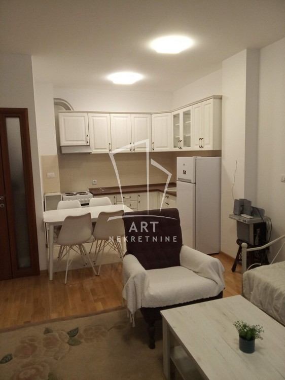 Izdaje se potpuno namešten jednoiposoban stan površine 47m2 u prestižnom Alfa City kompleksu u Madridskoj ulici, Rudo, Zvezdara.