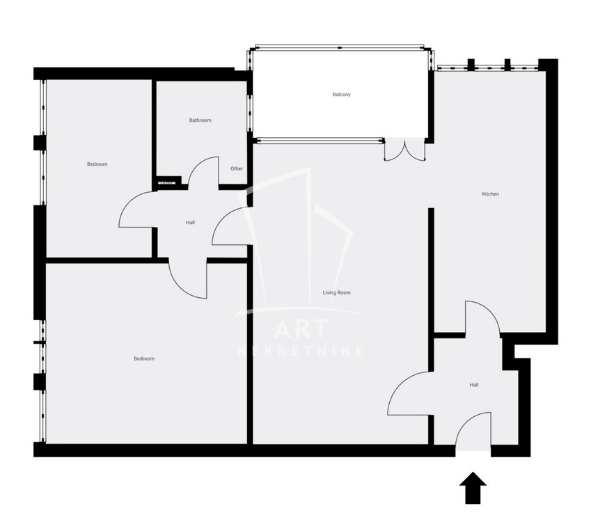Sastoji se od ulaznog hodnika, kuhinje sa trpezarijom, dnevne sobe ,2 spavaće sobe, kupatila i zastakljene lođe.