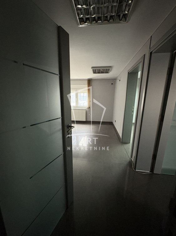 Izdaje se poslovni prostor na odličnoj lokaciji, u blizini Autokomande, na prvom spratu održavane zgrade, Ukupna površina poslovnog prostora je 144m2.