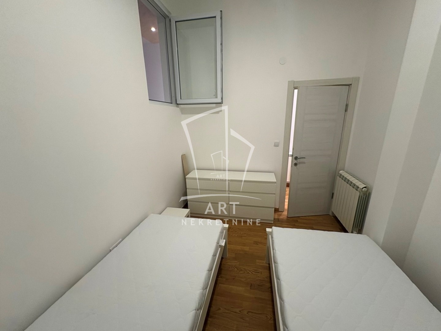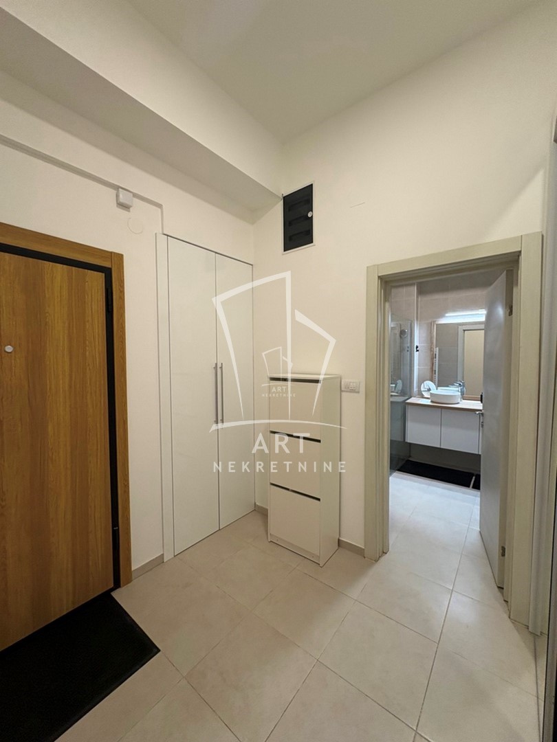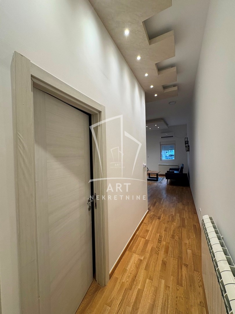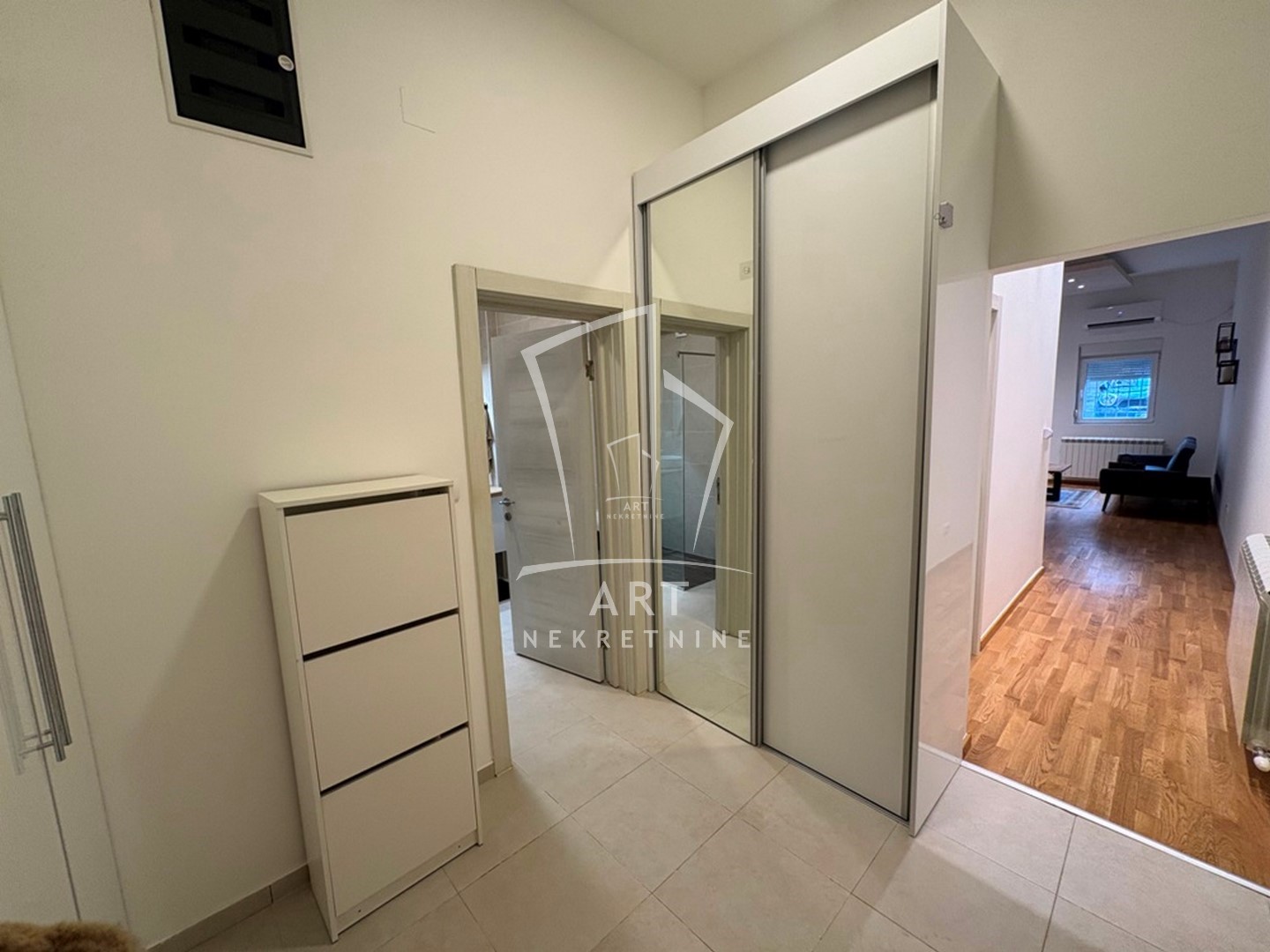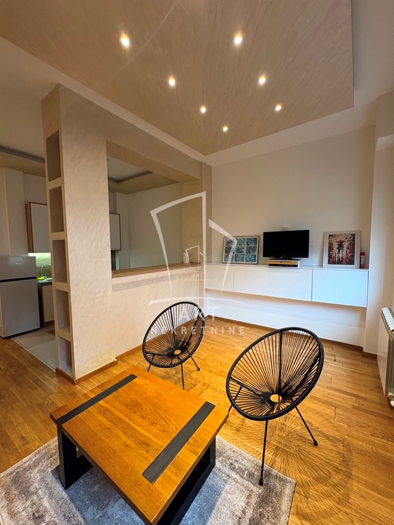 Opremljen je novim nameštajem, a dodatni komfor pružaju visoki plafoni od 3.20 m, etažno grejanje, inverter klima uređaj, kao i niski mesečni troškovi. Dostupno je parking mesto uz doplatu od 50€.