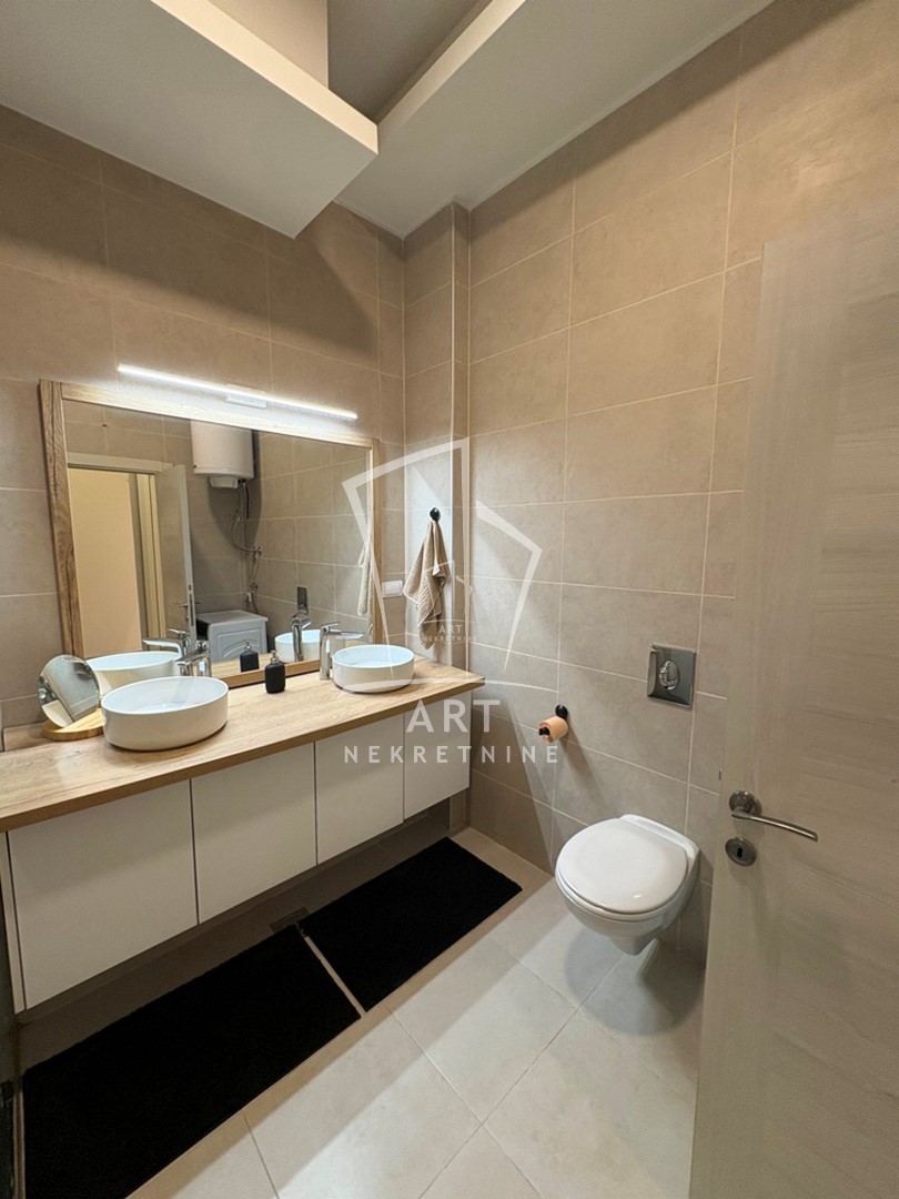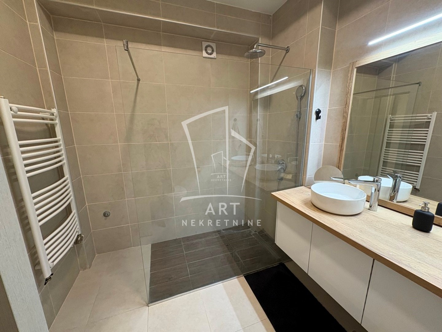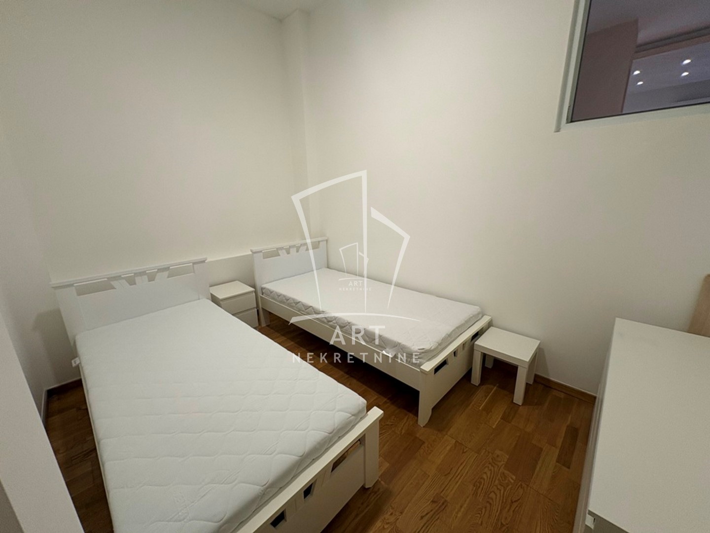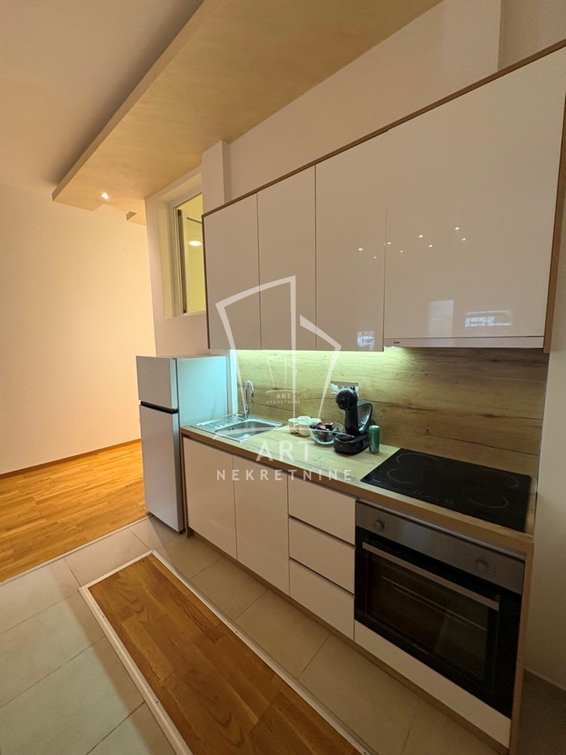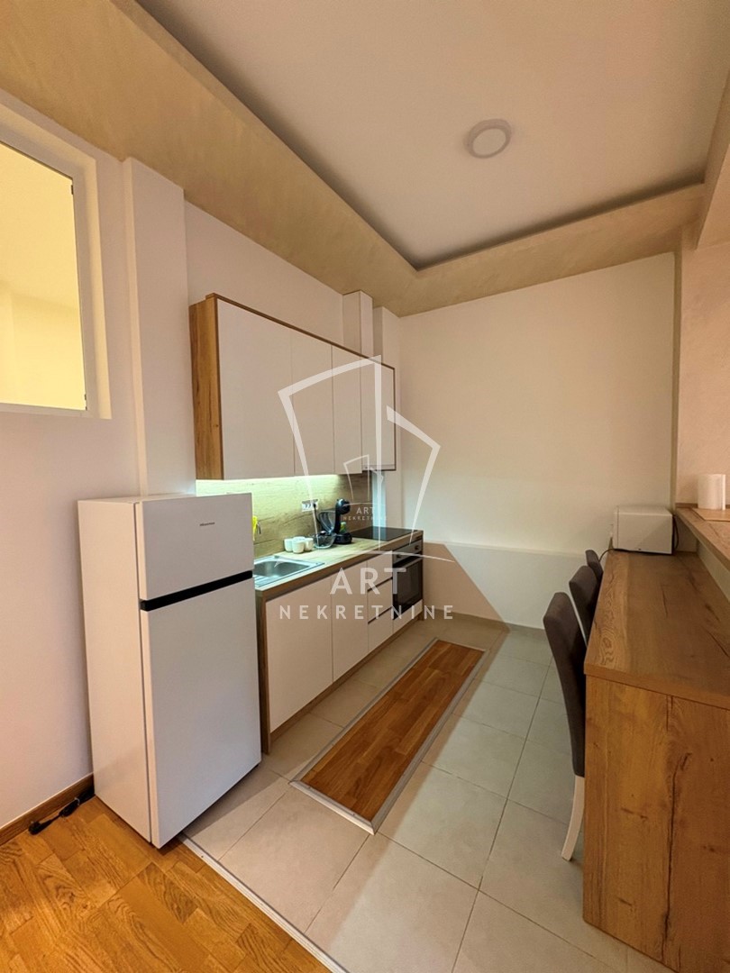 Opremljen je novim nameštajem, a dodatni komfor pružaju visoki plafoni od 3.20 m, etažno grejanje, inverter klima uređaj, kao i niski mesečni troškovi. Dostupno je parking mesto uz doplatu od 50€.