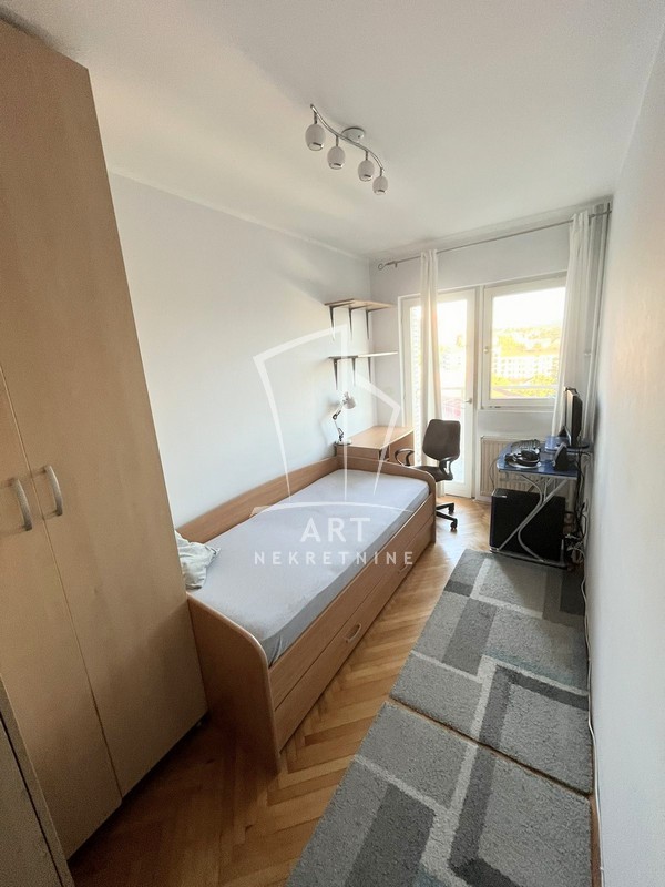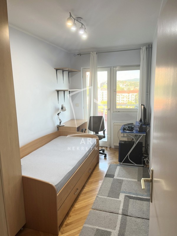 Izdaje se lep, dvosoban stan , blizu TC Banjica. Stan poseduje hodnik, dnevni boravak, kuhinju i trpezariju, spavaću sobu, kupatilo, ostavu i divnu terasu koja se prostire duž celog stana. Ima centralno grejanje, klimu, internet. Zgrada je lepo održavana, ima video nadzor i interfon. Oko zgrade je parking koji nije zoniran. Režije su : infostan 7000 dinara, struja 3000 dinara + internet. Zgrada nema lift.