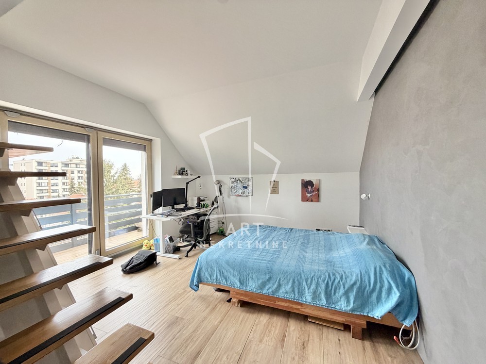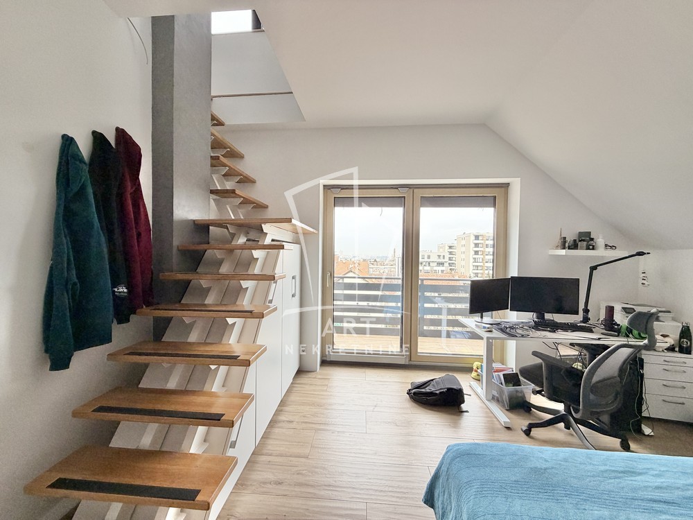 Na galeriji, koja nije ušla u kvadraturu stana, nalazi se još jedna soba-dečiji dnevni boravak i tehnička soba. Prodaje se komletno opremljen.