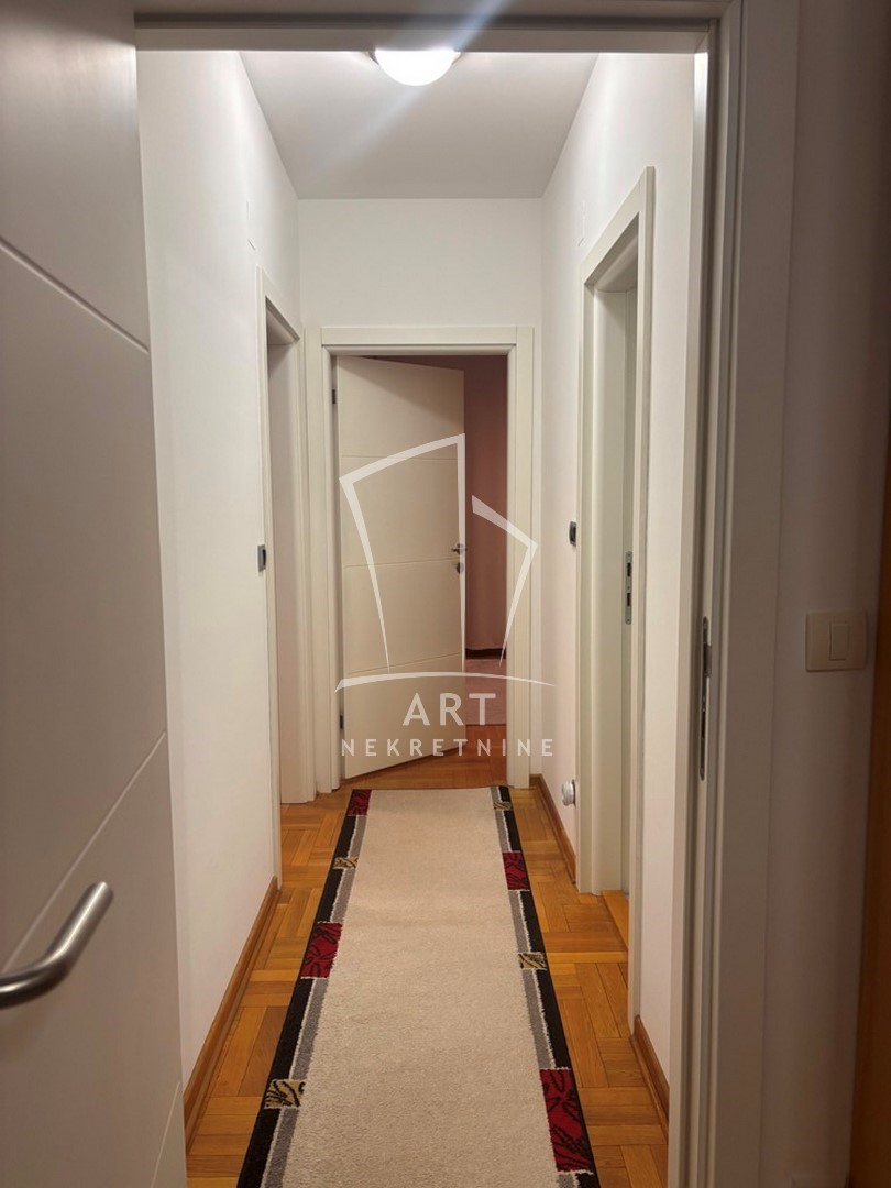 Izdaje se prelepo namešten stan na Banovom Brdu na samo 5 minuta hoda od Ada Malla i Ade Ciganlije.Stan se sastoji od dnevne sobe sa trpezarijom i odvojene velike kompletno nameštene kuhinje,dve prostrane spavaće sobe,dva kupatila i dve terase.Zgrada je u mirnom delu Banovog Brda,a na pešačkoj