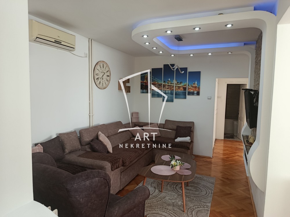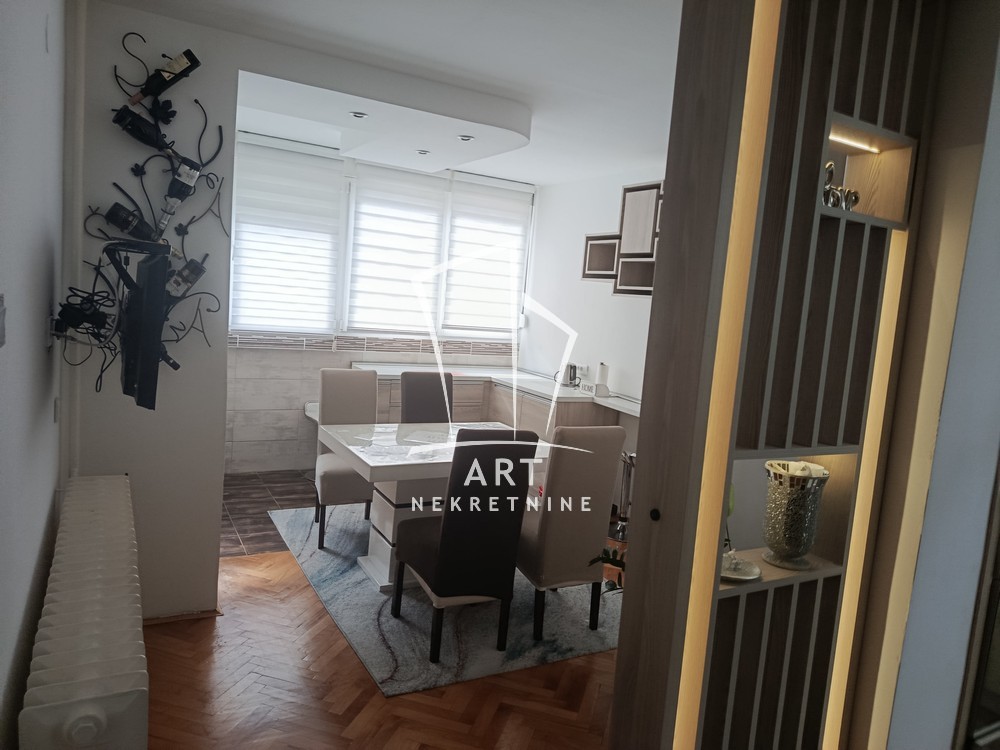 Luksuzan trosoban stan od 73m? na visokom prizemlju u srcu Banovog brda. Poseduje dve komforne spavaće sobe, prostran dnevni boravak, modernu kuhinju i savremeno kupatilo. Potpuno namešten, sa kvalitetnim završnim radovima i opremom. Uključuje gardero