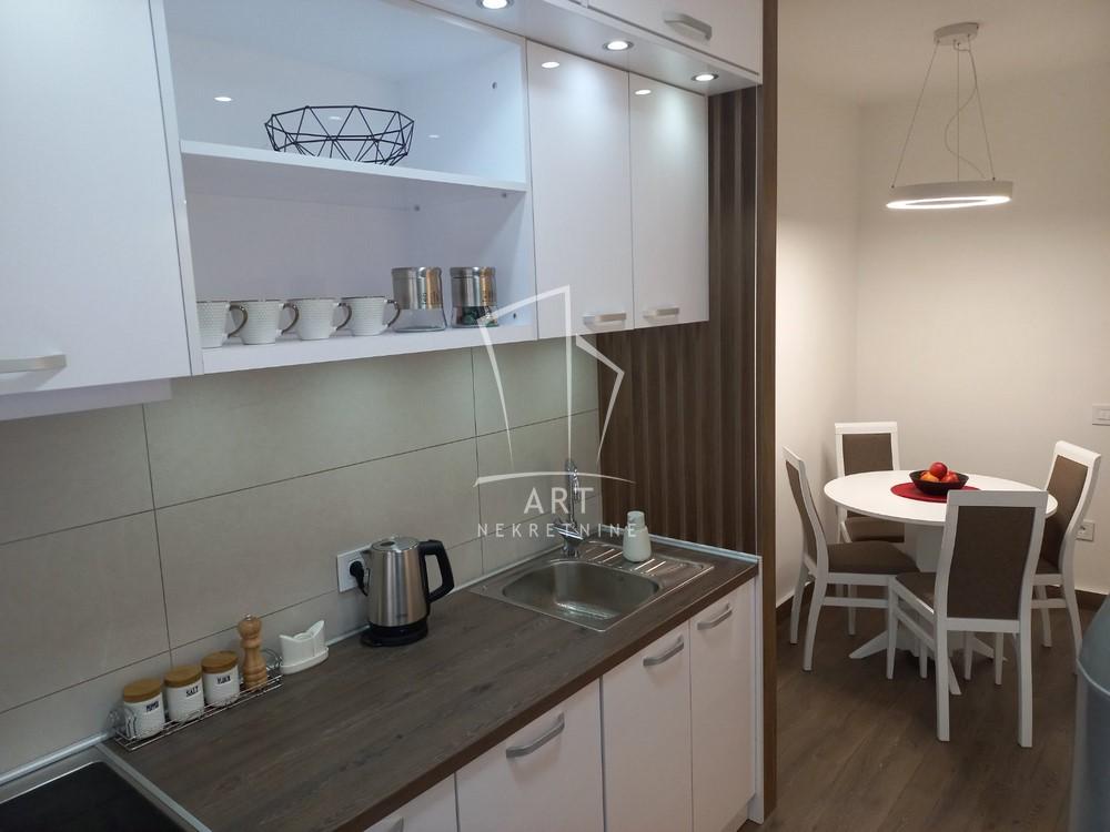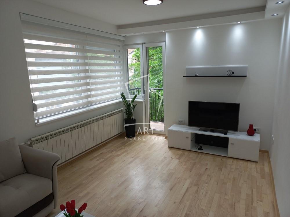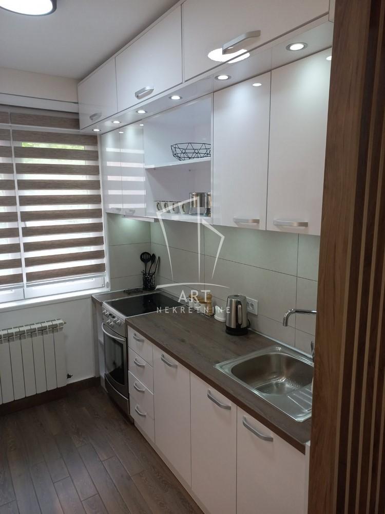 Sastoji se od ulaznog dela, prostranog dnevnog boravka, kuhinje i trpezarijskog dela, spavaće sobe , veće terase i manje lođe, kupatila i hodnika. Stan je svetao, funkcionalan sa dovoljno mesta za odlaganje.
