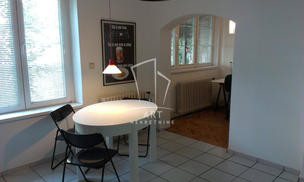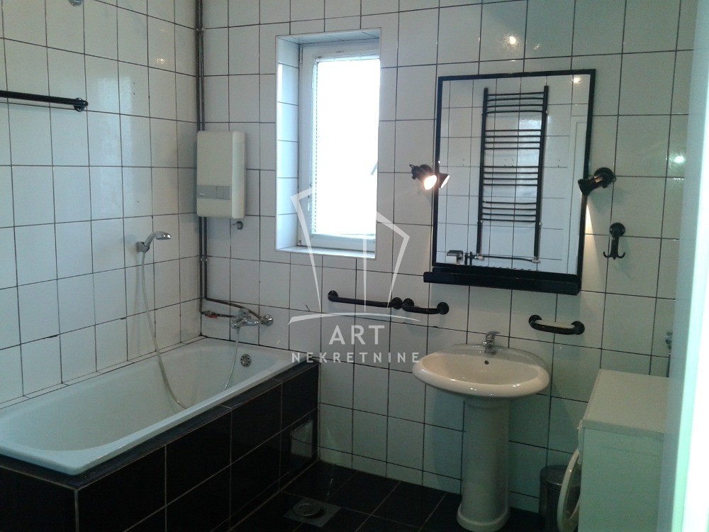 Izdaje se stan u kući kao poslovni prostor. Kuća se nalazi na ravnom i lepo uređenom placu, sa lakim pristupom svim bitnim sadržajima javnom prevozu, prodavnicama, školama, parkovima, vrtićima. Poseduje zaseban ulaz nezavisan u odnosu na ostale stambene jedinice. U blizini tržnog centra Ada mol, na mirnoj lokaciji. Odličan raspored, sastoji se iz velike dnevne sobe, odvojene kuhinje sa trpezarijom, tri sobe, kupatila i toaleta, terase. Sistem grejanja na gas. Na kući je nova fasada, urađena je termoizolacija, stolarija je pvc, ima klimu.