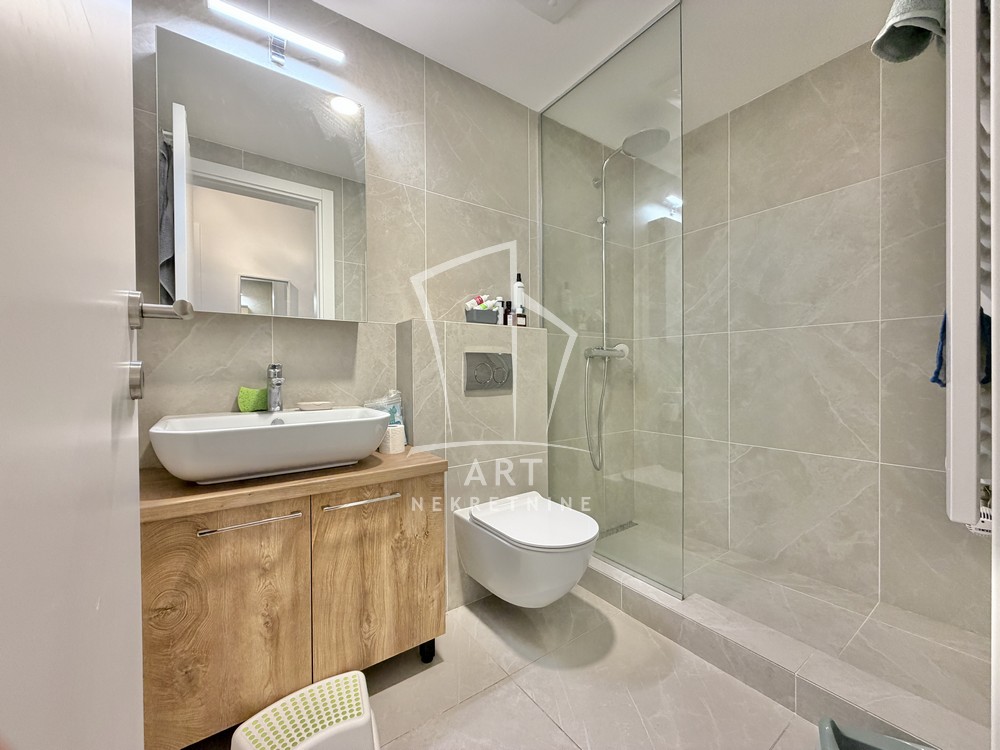 Izdaje se polunamešten stan na odličnoj lokaciji u novom kompleksu Big residence sa prelepim pogledom na Dunav.Sastoji iz velikog dnevnog boravka sa kuhinjsko trpezarijskim delom,dve sobe od kojih je jedna prazna i zakupac je oprema po svom nahođenju,dva kupatila i ostave.Mesečni troškovi niski,grejanje je centralno na kalorimetre i plaća se po potrošnji.Mikrolokacija izuzetna,blizina Big šoping centra,Ade huje,svih sadržaja potrebnih za svakodnevni život.Odlična povezanost javnim prevozom sa svim delovima grada.Kućni ljubimci nisu dozvoljeni.Postoji mogućnost zakupa garažnog mesta u okviru kompleksa.