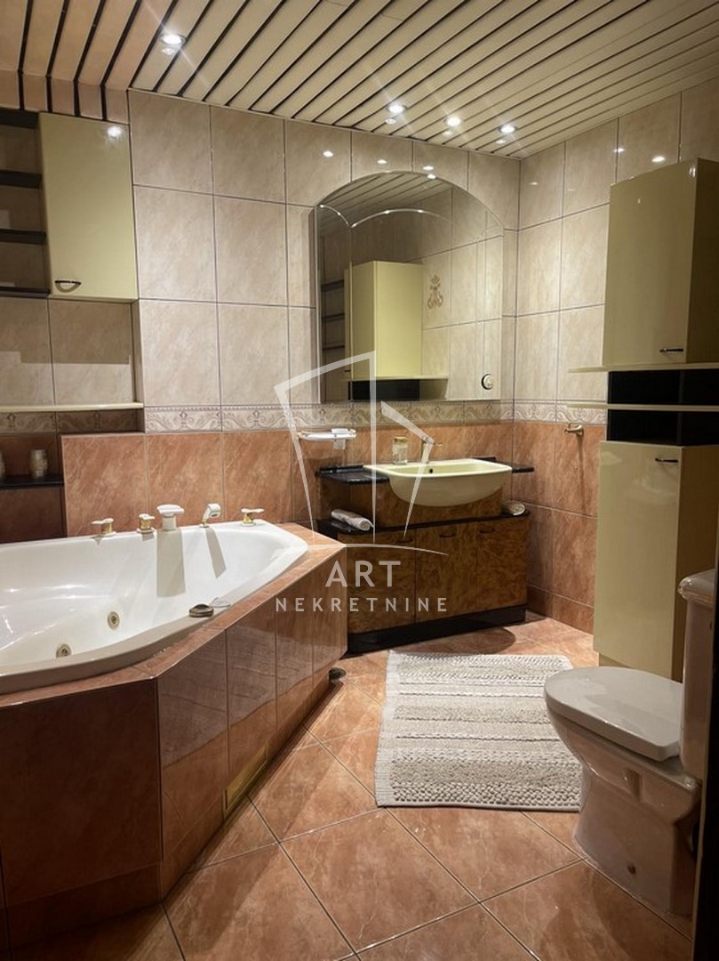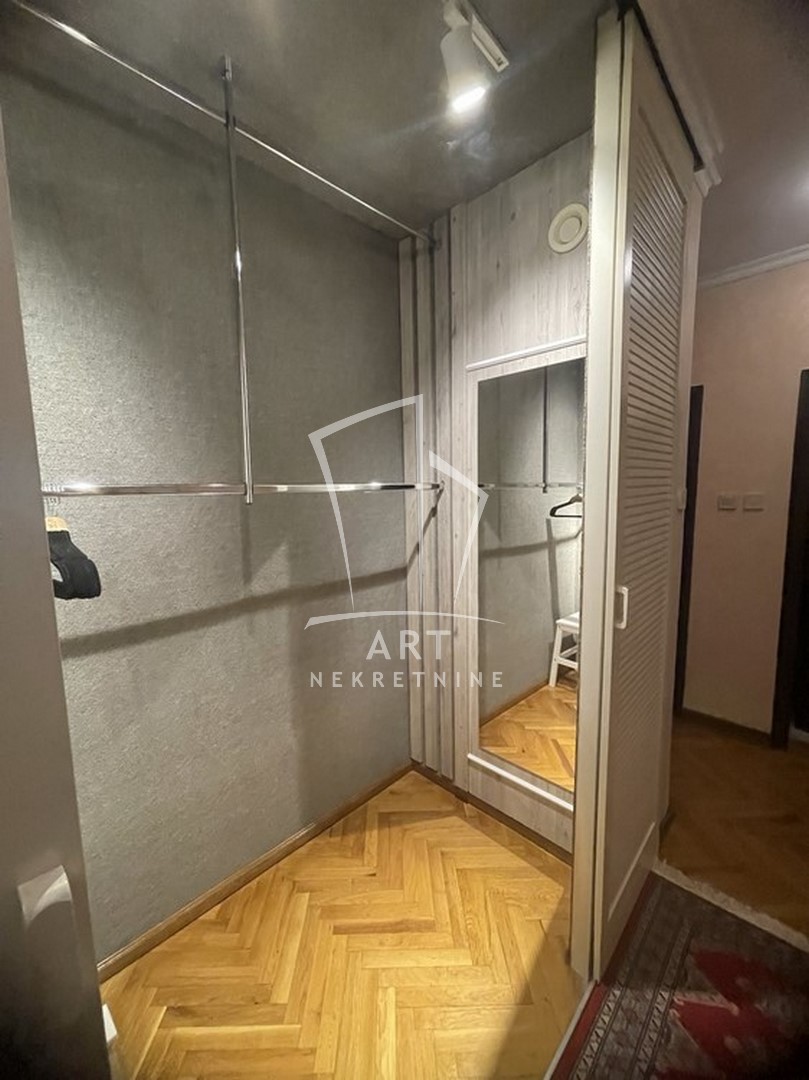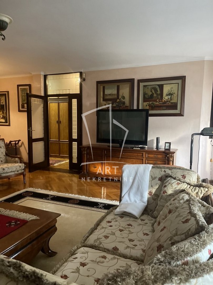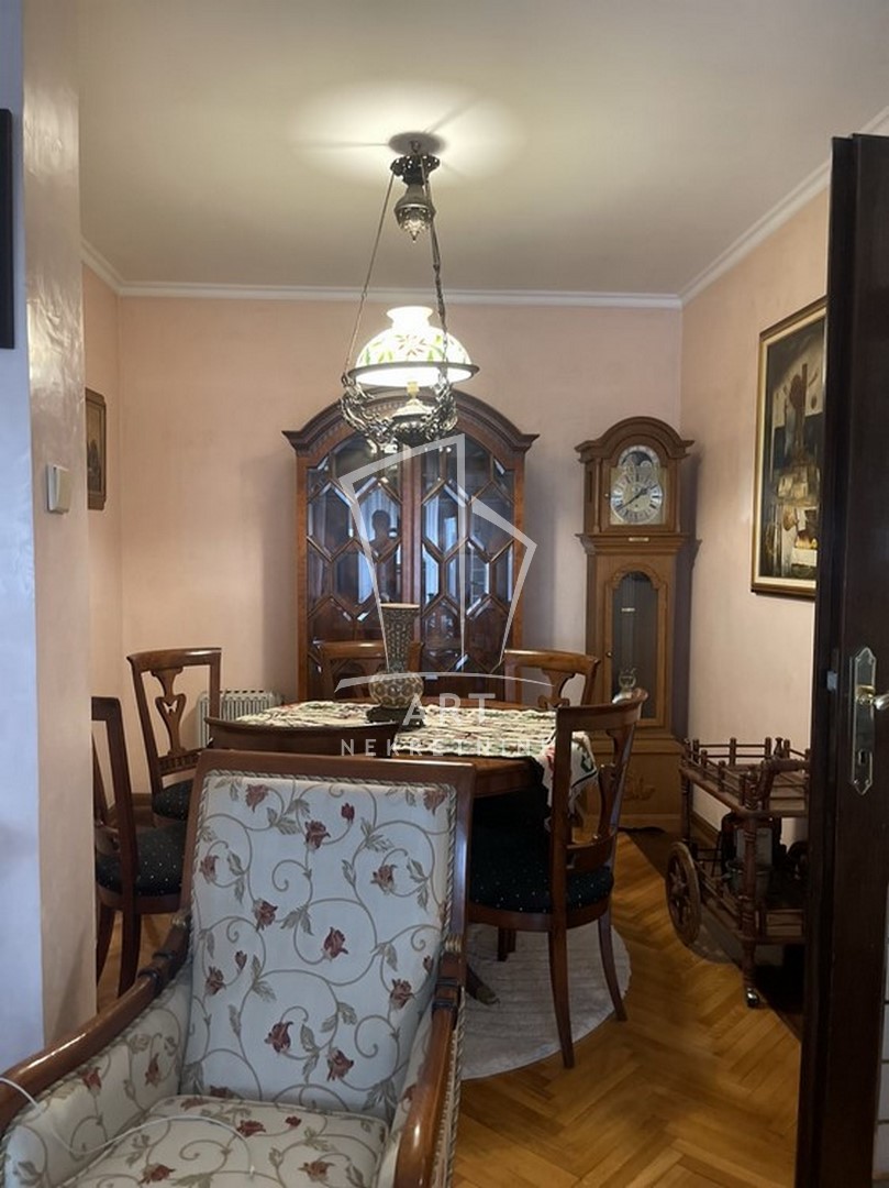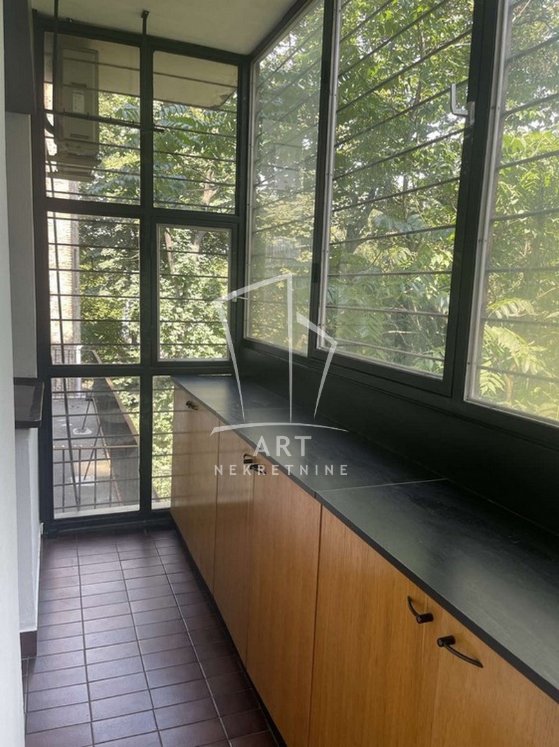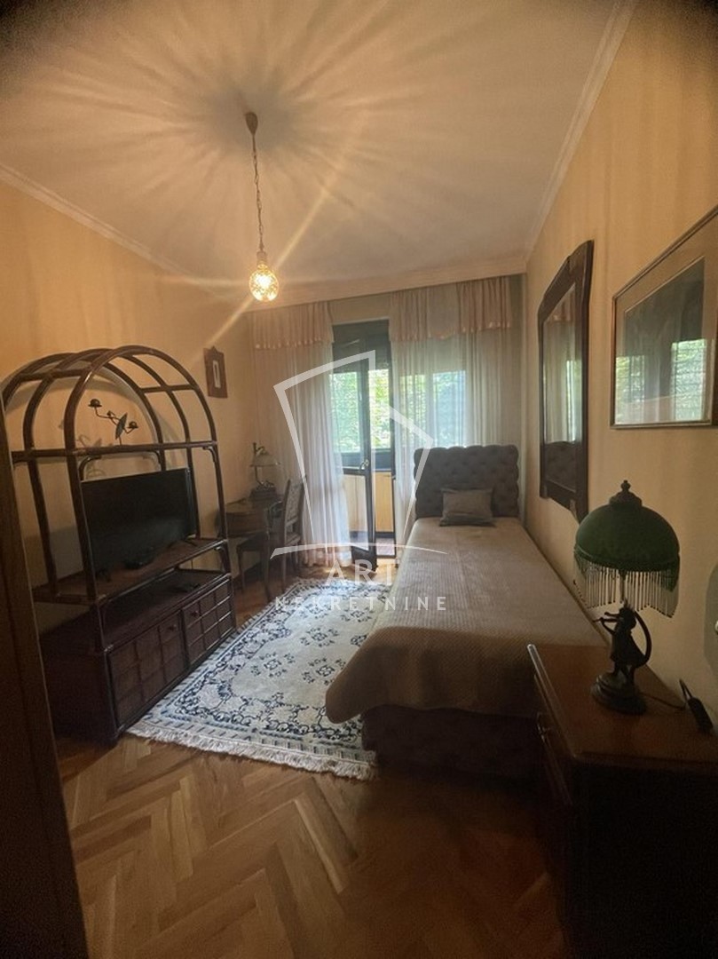 Odličan dvostrano orijentisan stan u blizini Zelenog venca. Sastoji se od tri spavaće sobe, velike dnevne sobe sa trpezarijom, kuhinje sa trpezarijom, dva kupatila, malog toaleta, vešeraja, ostave, walk in garderobera i dve terase. Prednost ovog stana je centralni hodnik iz kojeg se ulazi u sve prostorije. Iz dve spavaće sobe postoji izlaz na zastakljenu terasu sa jedne strane stana, a sa druge strane na terasu se izlazi iz dnevne sobe i kuhinje. Kompletno opremljen stvarima za svakodnevni život. U blizni su supermarketi , pijaca Zeleni venac, linije gradskog prevoza. Zgrada je održavana i čista. Dozvoljeni su manji kućni ljubimci. Mogućnost rentiranja parking mesta prekoputa zgrade.
