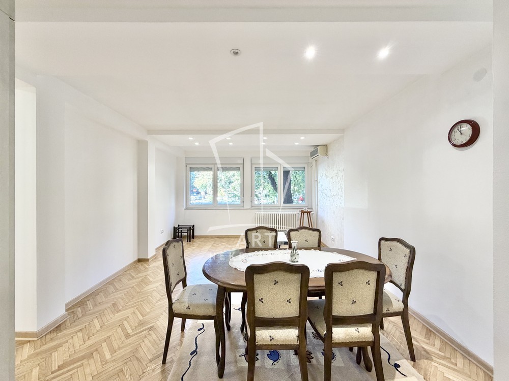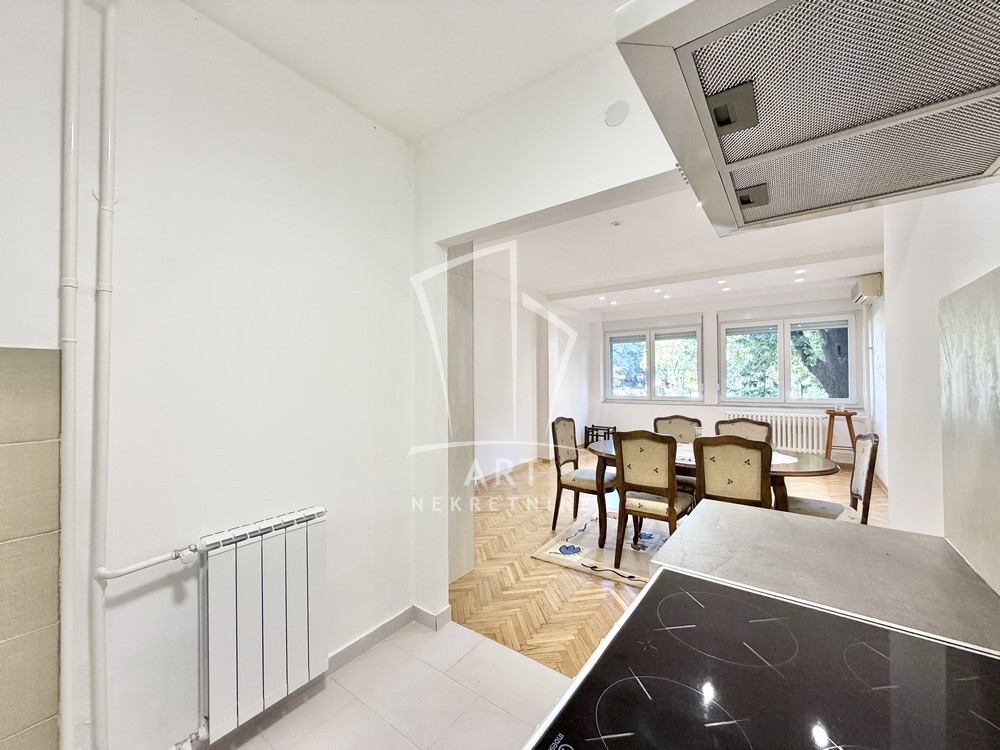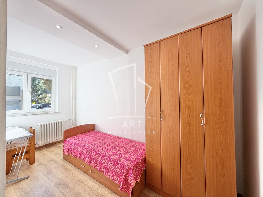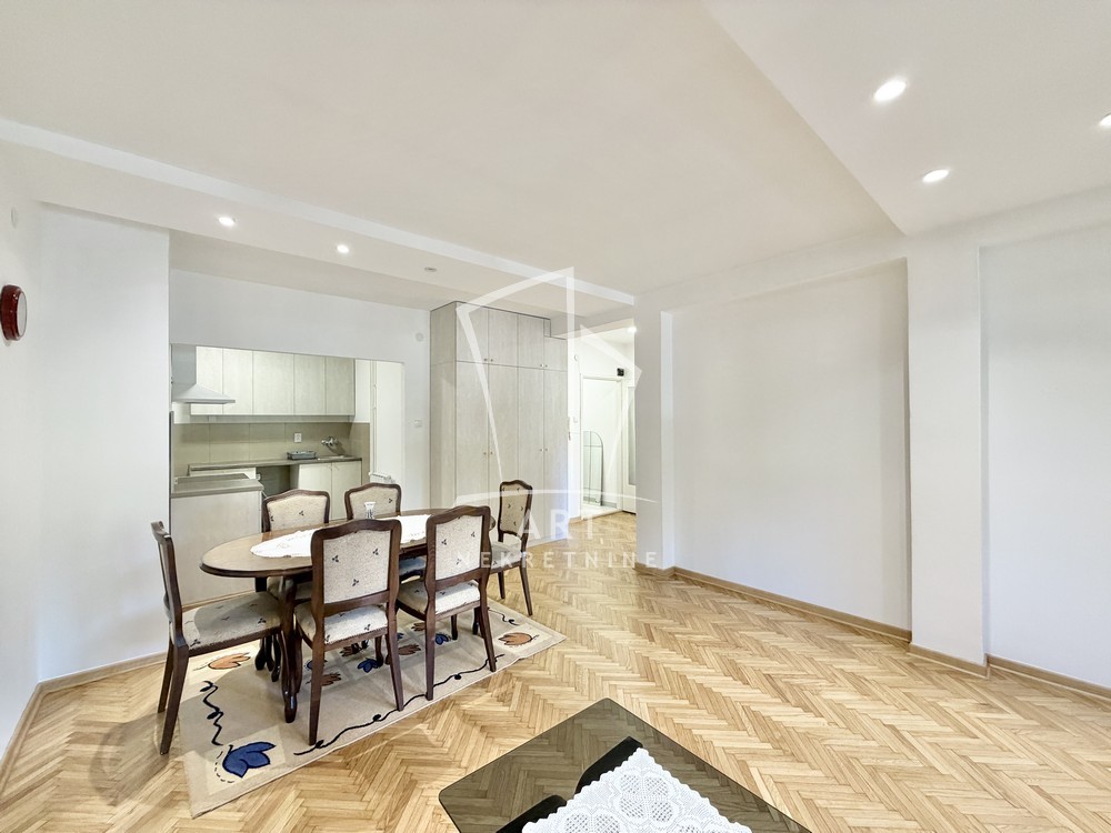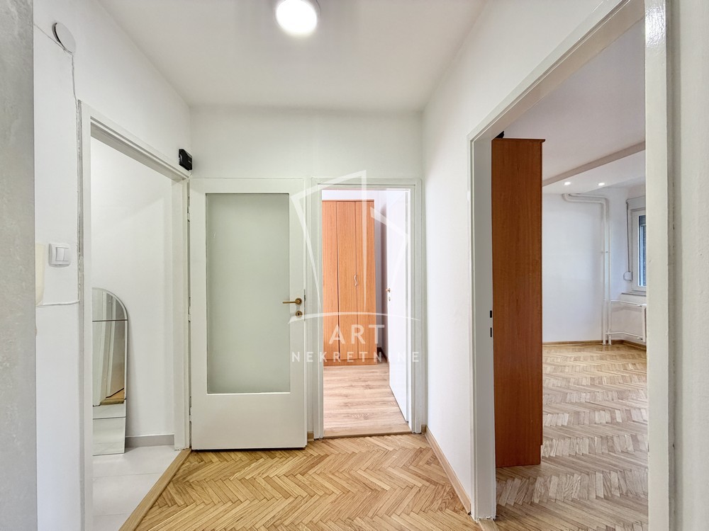 Svetao, dvostrano orijentisan, poseduje ulazni hodnik, dnevni boravak sa trpezarijom i kuhinjom, dve sobe, kupatilo, Depozit je obavezan u visini jednog mesečnog zakupa.