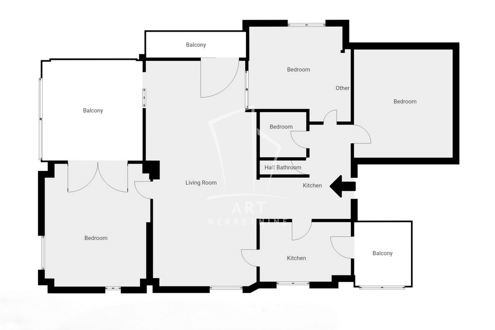 Struktura: predsoblje, dnevni boravak, trpezarija, kuhinja, 3 spavaće sobe, kupatilo, WC, 3 lođe + pripadajući podrum.
