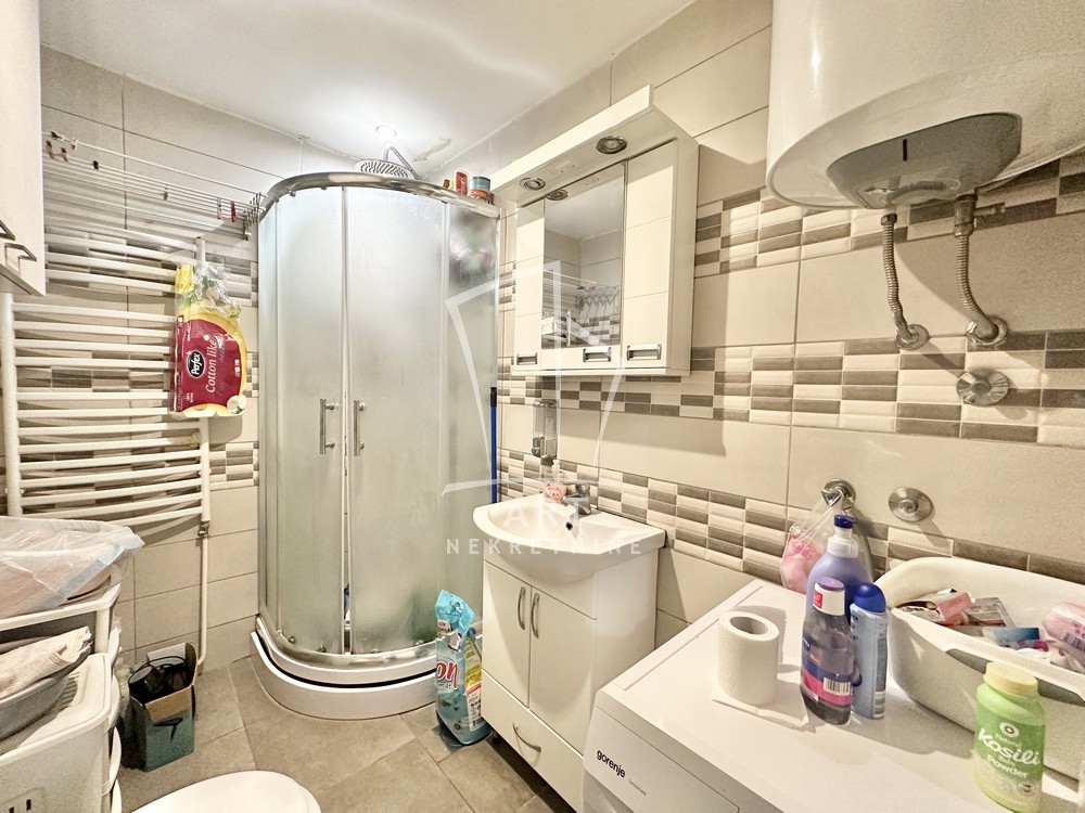 Stan se sastoji od ulaznog hodnika, dnevne sobe spojene sa kuhinjskim i trpezarijskim delom, komotne spavaće sobe i kupatila. Ispred stana se nalazi terasa od oko 7m2 koja gleda na unutrašnjost bloka odnosno na garažni deo.