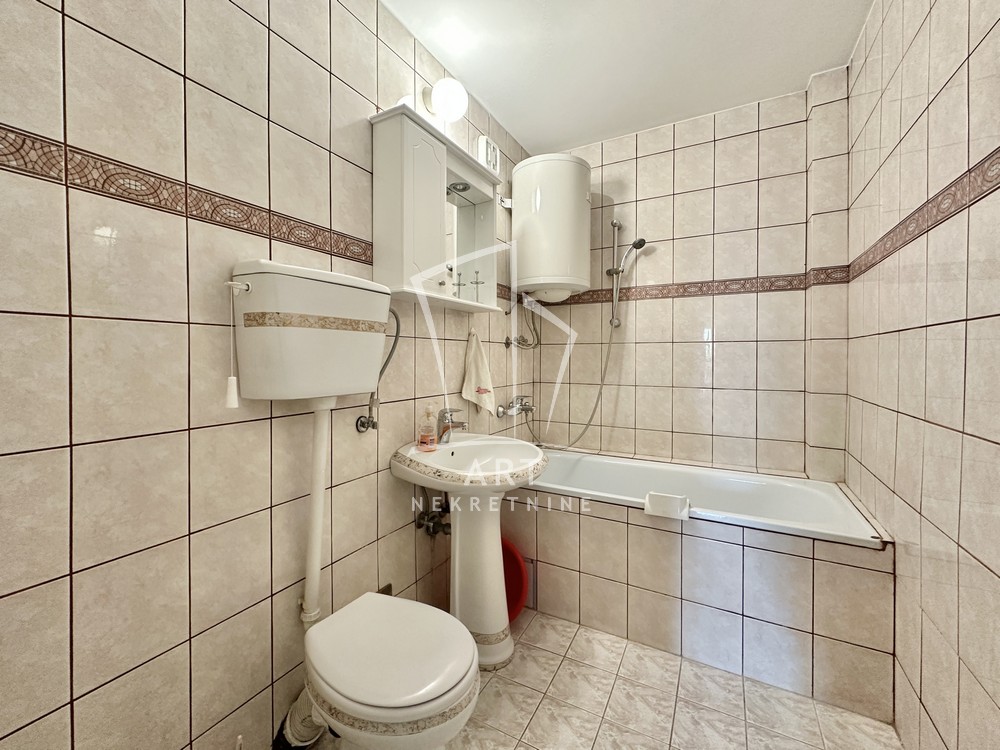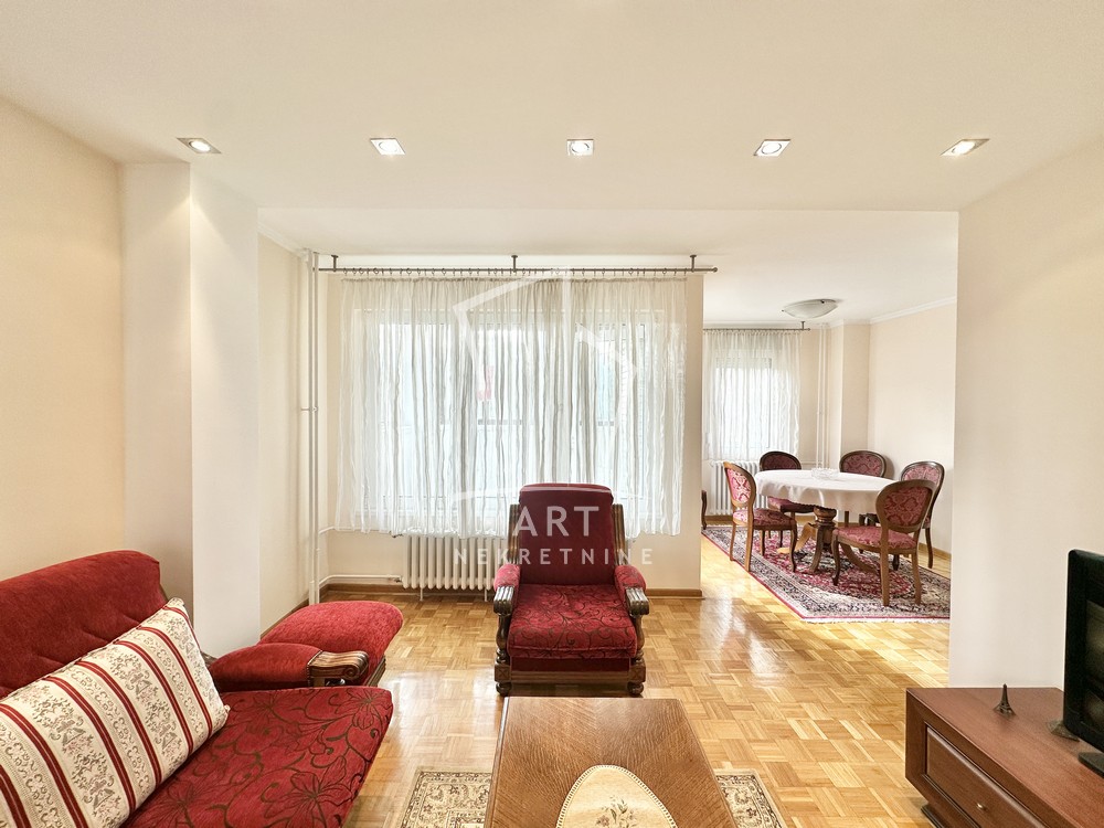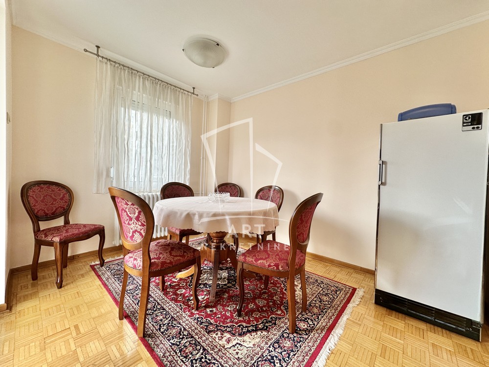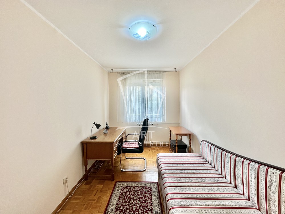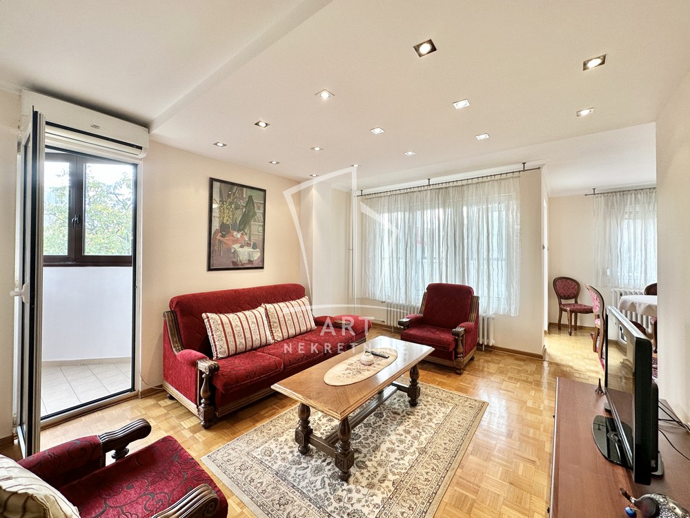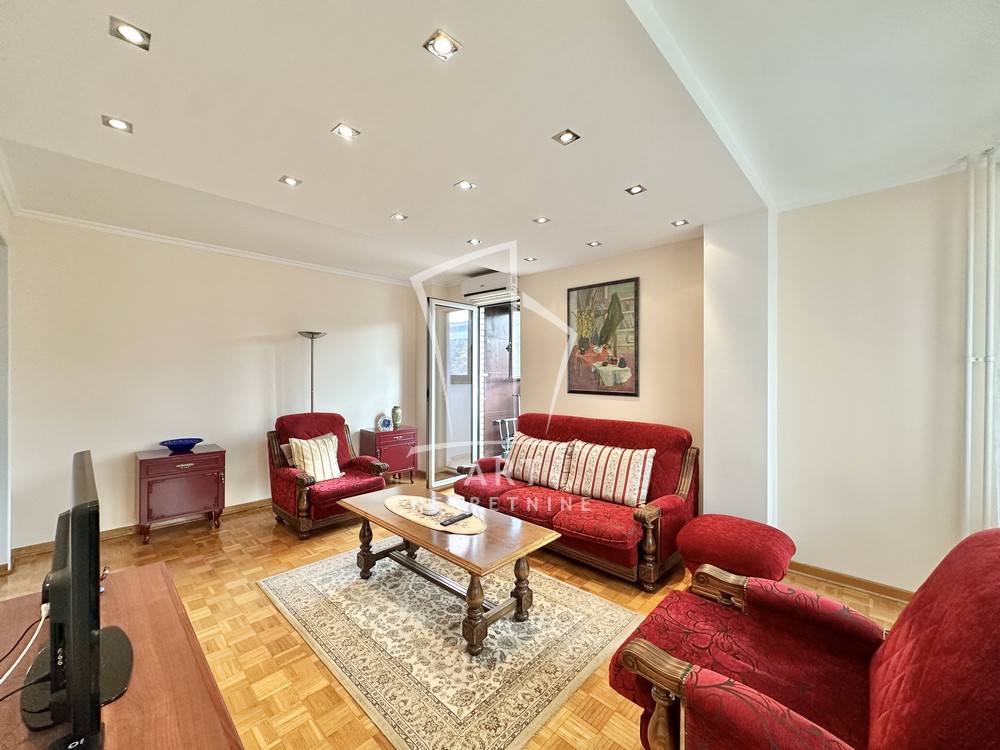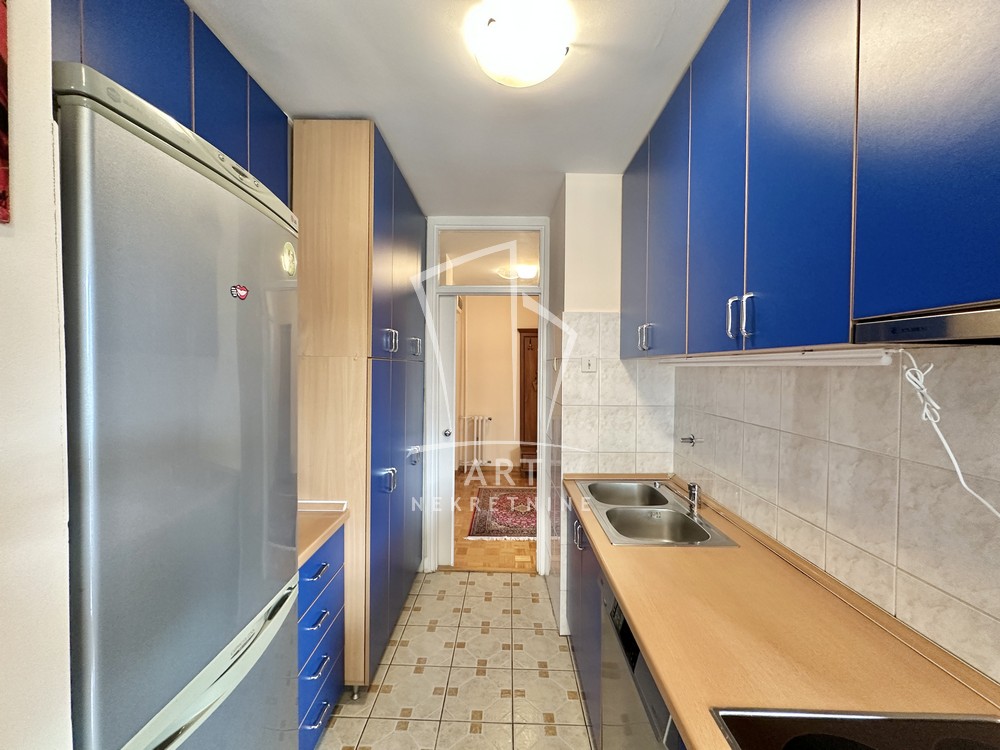Hodnik, komforna dnevna soba, kuhinja, trpezarija, dve lepe spavaće sobe, dva kupatila, dve lođe, sunčan i svetao. Odmah useljiv.