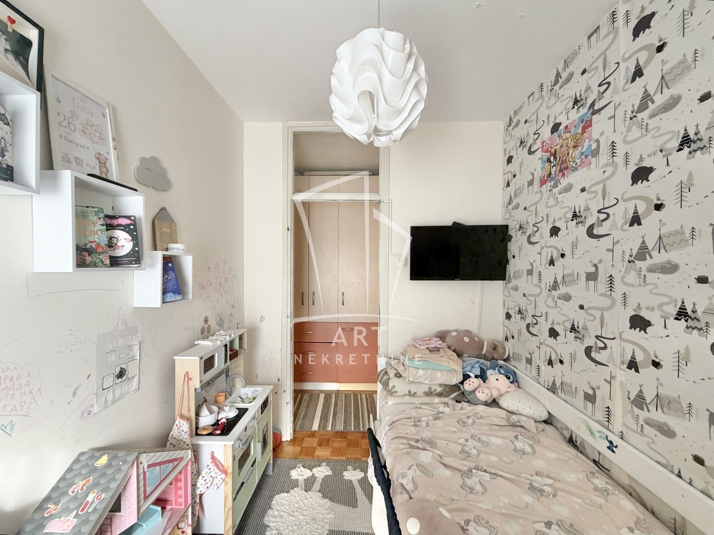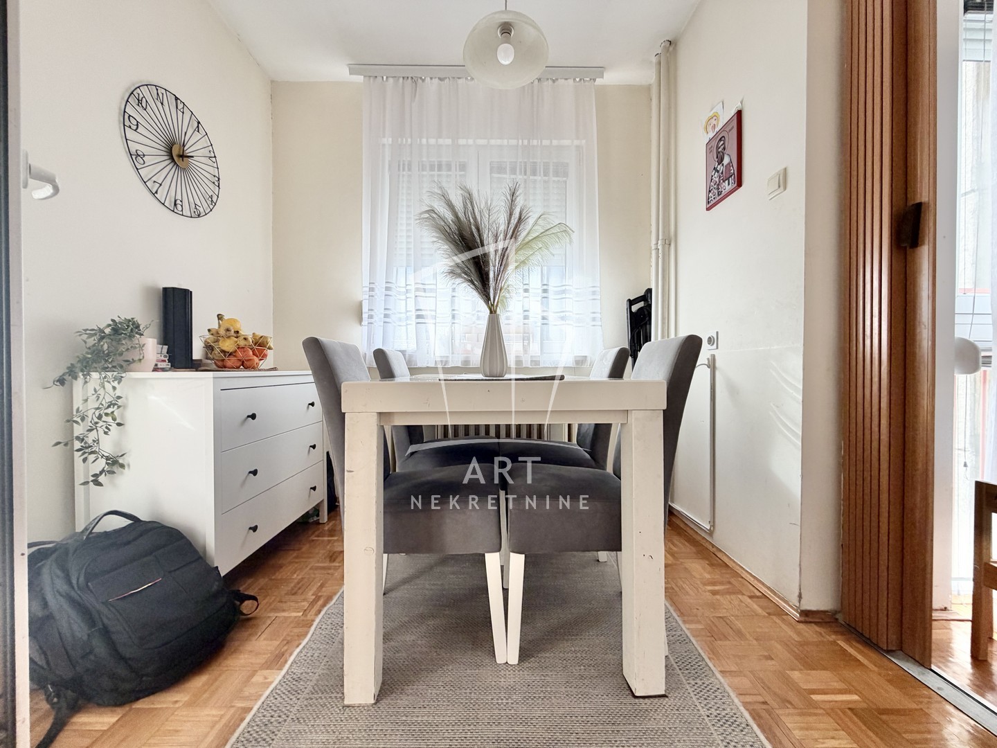 Na prodaju svetao funkcionalan stan na jednoj od najtražeijih lokacija na Novom Beogradu. Stan se prodaje namešten. Sastoji se od dve spavaće sobe, dnevne, kuhinje, trpezarije, terase I kupatila. Stan gleda na park ispred zgrade. Ulaz I celokupna zgrada su veoma čisti, zgrada ima 2 lifta, manji i teretni i oba su renovirana. Uz stan se dobija i korisšćenje podrumske prostorije.