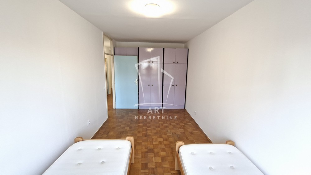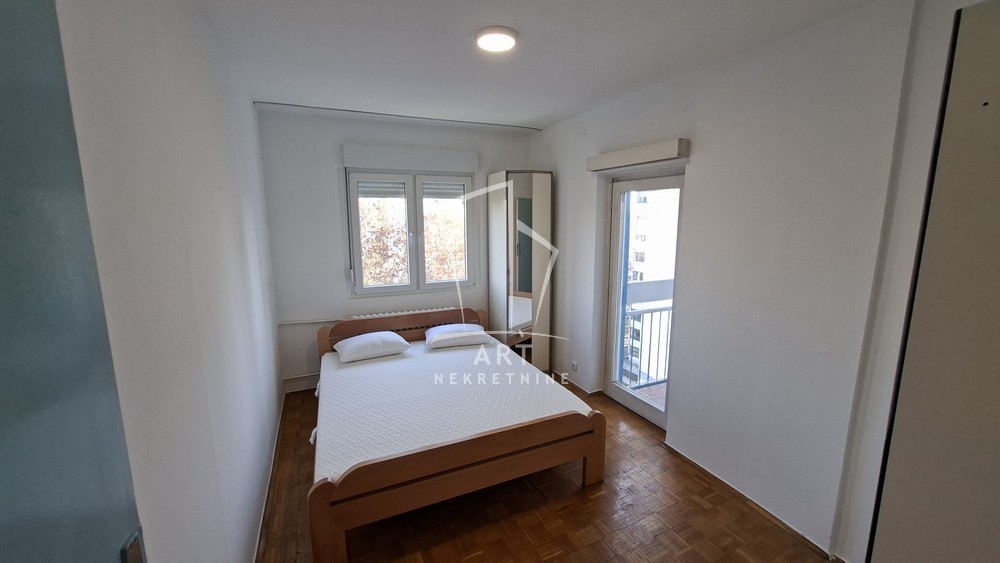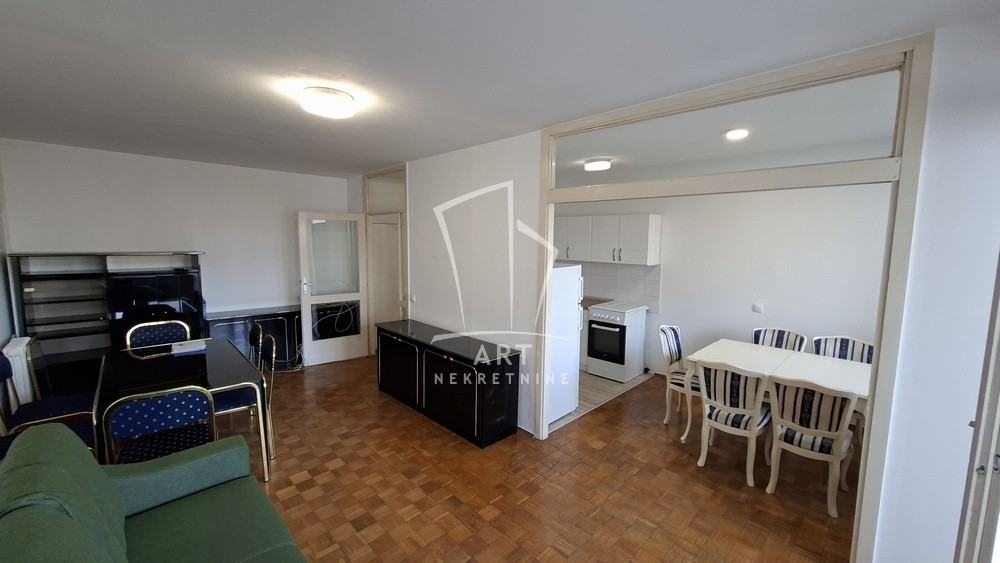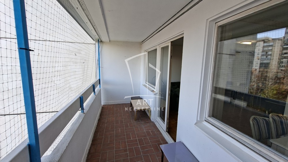 Stan je okružen zelenilom, orijentisan ka parku i nalazi se na sedmom spratu od osam u Bloku 64. Stan je izuzetno svetao i tih, pošto je okrenut ka parku sastoji se od hodnika iz koga se ide u sve prostorije,dve spavaće sobe,velike dnevne, kuhinje,trpezarije, toaleta, kupatila ivelike terase.Stan je okrečen i kompletno opremljen.U kupatilu su promenjene sanitarije i bojler.Stavljena je nova kuhinja. Iz dnevne i jedne spavaće se može izlaziti na terasu. U blizini je Imo centar i Lidl kao i veliki broj autobuskih linija.