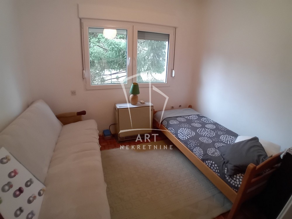Sadrži četiri prostorije, dva kupatila, dva ulaza i pomoćnu kuću sa dve prostorije. Pvc prozori, drveni parketi, kvalitetna starija gradnja. Komunalije niske.