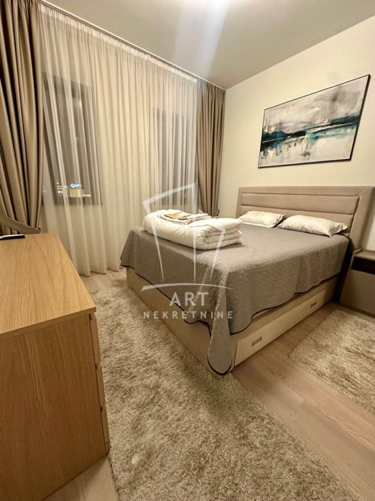 Trosoban stan u Beogradu na vodi, zgrada Libera, namenjen svima koji žele da žive u budućem centru grada, na jednoj od najatraktivnijih lokacija današnjice. Stan je izuzetno lepo i moderno uređen, sa pažljivo biranim detaljima koji spajaju stil i komfor, poseduje dve prostrane spavaće sobe, dva savremeno opremljena kupatila, funkcionalnu kuhinju sa kvalitetnim elementima i tehnikom, kao i elegantan dnevni boravak idealan za uživanje i goste. Nameštaj je moderan i u savršenom skladu sa prostorom, a terasa pruža prijatan pogled ka Galeriji, stvarajući osećaj urbanog luksuza i mira u srcu grada.Garažno mesto je uključeno u cenu.