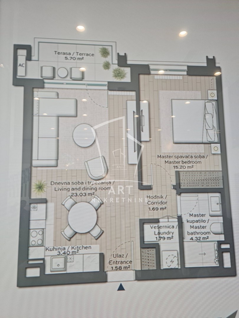 Velika pogodnost je direktan ulaz iz kompleksa u novi lux sportski centar Apolo, u okviru kog se nalaze bazen, teretane i kafići.