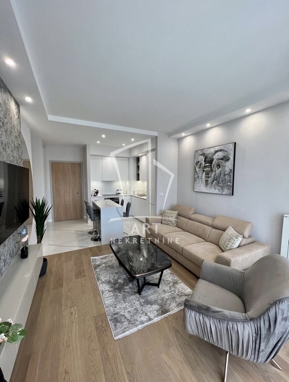Izdaje se moderan,potpuno opremljen elegantan stan površine 53,45m2 , smešten na prestižnoj lokaciji-BW u neposrednoj blizini Savske obale i shopping centra Galerija.