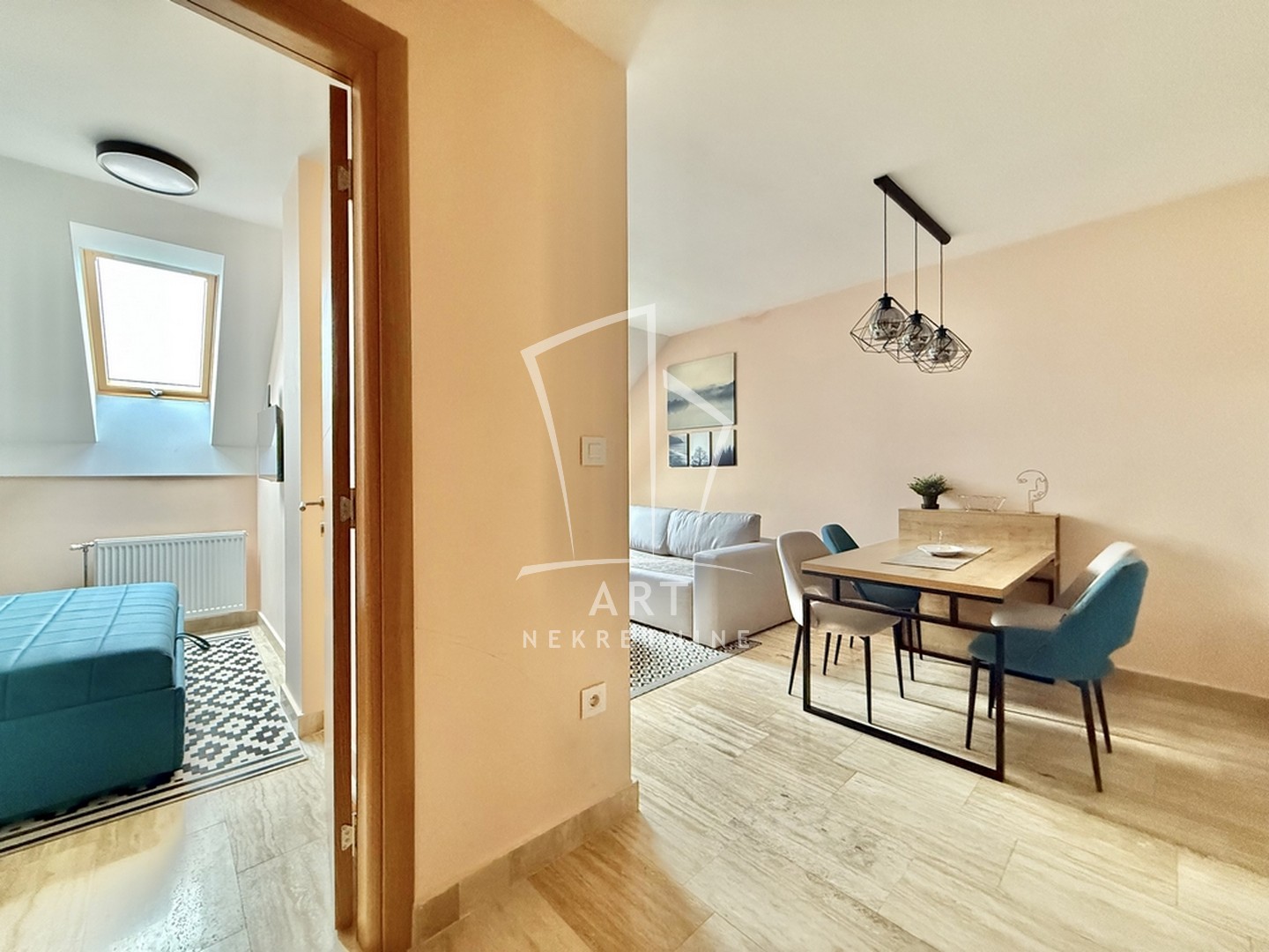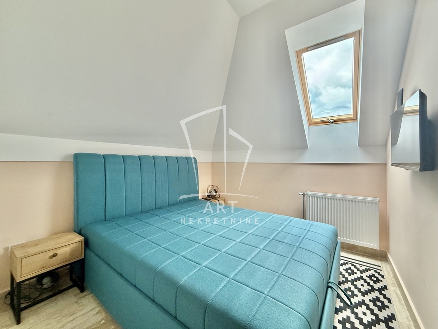 Zapadno je orijentisan. Grejanje je etažno na struju.