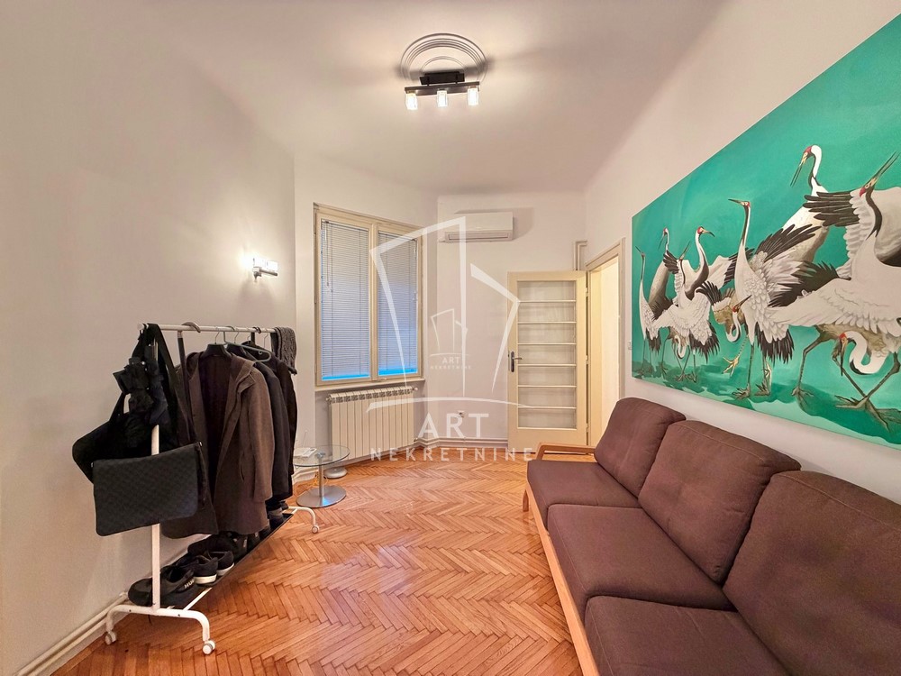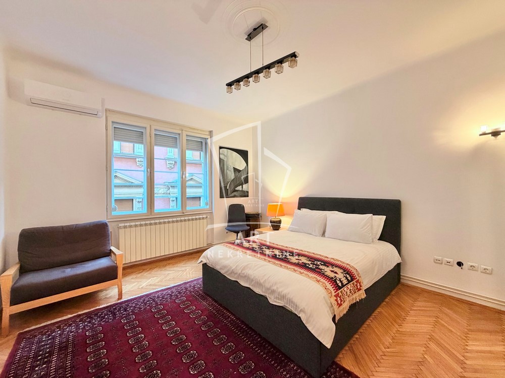 Na jednoj od najtraženijih gradskih lokacija, preko puta Narodnog pozorišta i hotela Marriott izdajemo potpuno renoviran lux stan, uknjizen na 48m2, mereno 60m2 (dodata kuhinja i trpezarija).