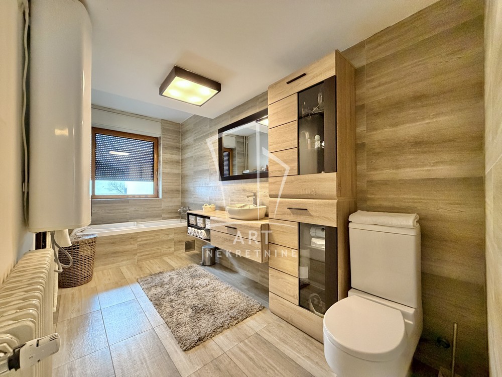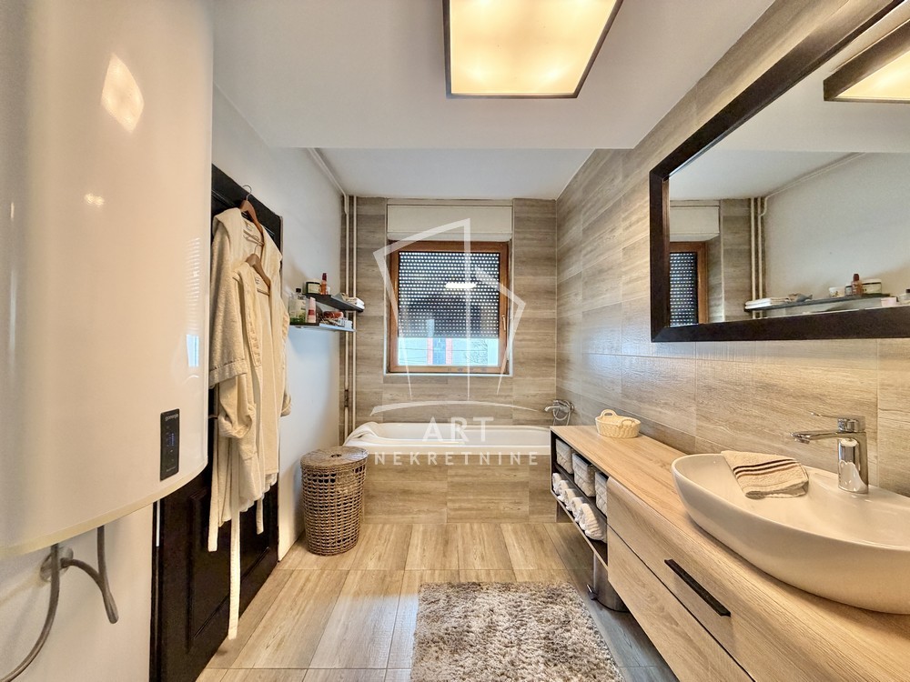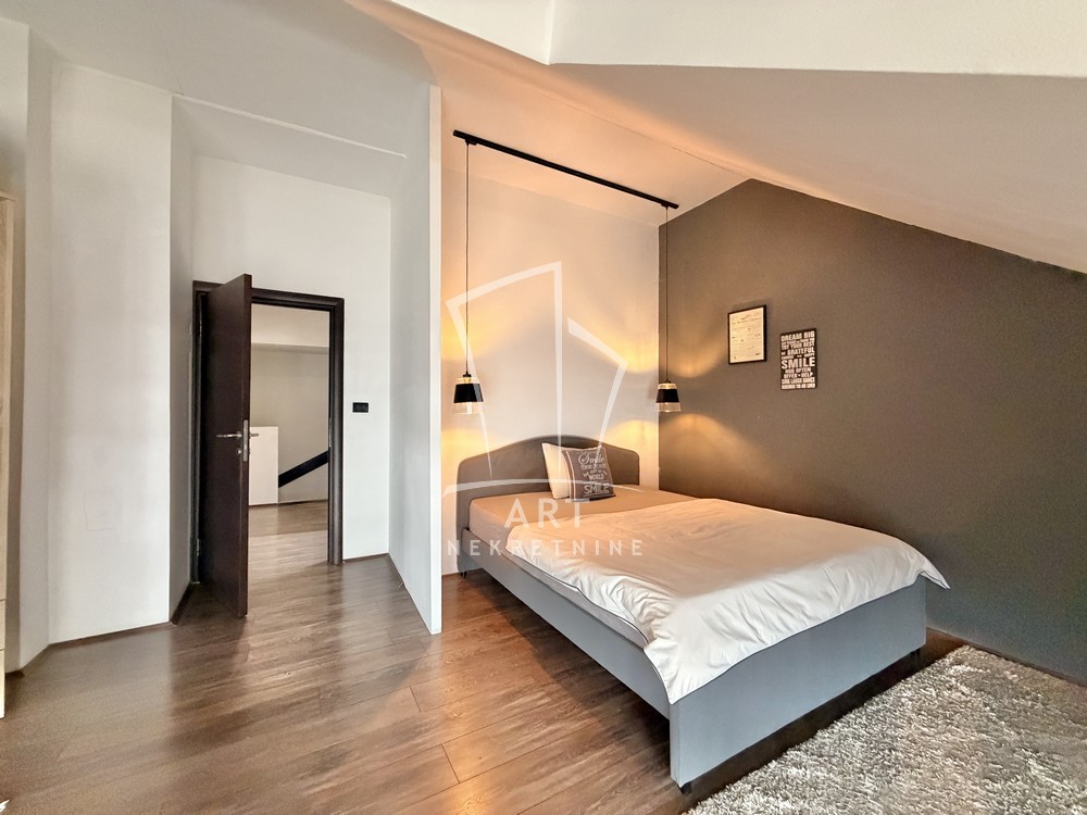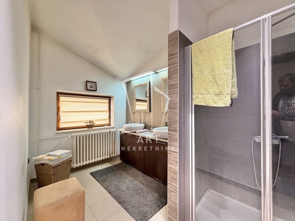 Na prvom spratu su 3 spavaće sobe, 2 kupatila i garderober, dok se na drugom spratu nalaze još 2 sobe i kupatilo.