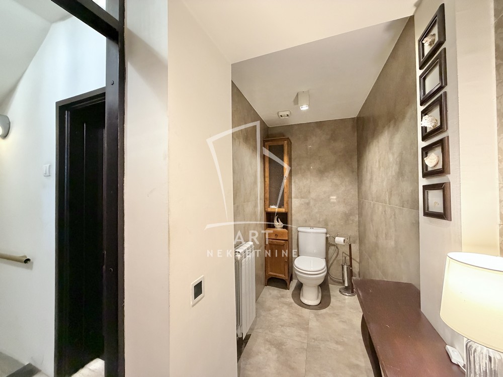Kuća poseduje poslovni prostor u prizemlju podeljen u 3 celine sa fleksibilnim rasporedom i 4 mokra čvora, pogodan za različite delatnosti (klinika, salon, kancelarije). Moguć ulaz iz dve ulice i kroz poslovni deo.