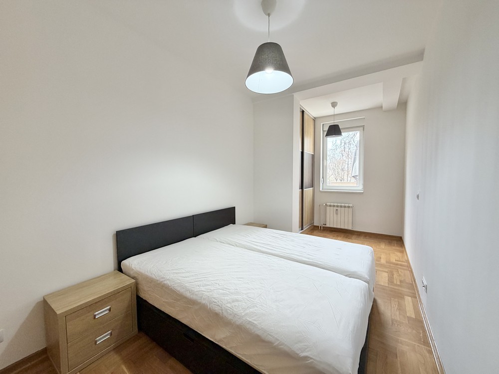 Mereno 69m2. U prilici smo da vam da vam ponudim odličan, kompletno namešten , dvosoban stan u zgradi novije gradnje na Vračaru u blizini Južnog bulevaru. Zgrada je novijeg datuma sa video nadzorom. Stan se sastoji od ulaznog predsoblja, kuhinje, trpezarijko dnevnog boravka, kupatila, spavaće sobe i prelepe terase od 21m2. U stanu je centalno grejanje na kalometre, postoji mogućnost i da se postavi alarm u stanu. Uz stan može i da se iznajmi garažno mesti po ceni od 100 evra. Stan za svaku preporuku, vredi pogledati.
