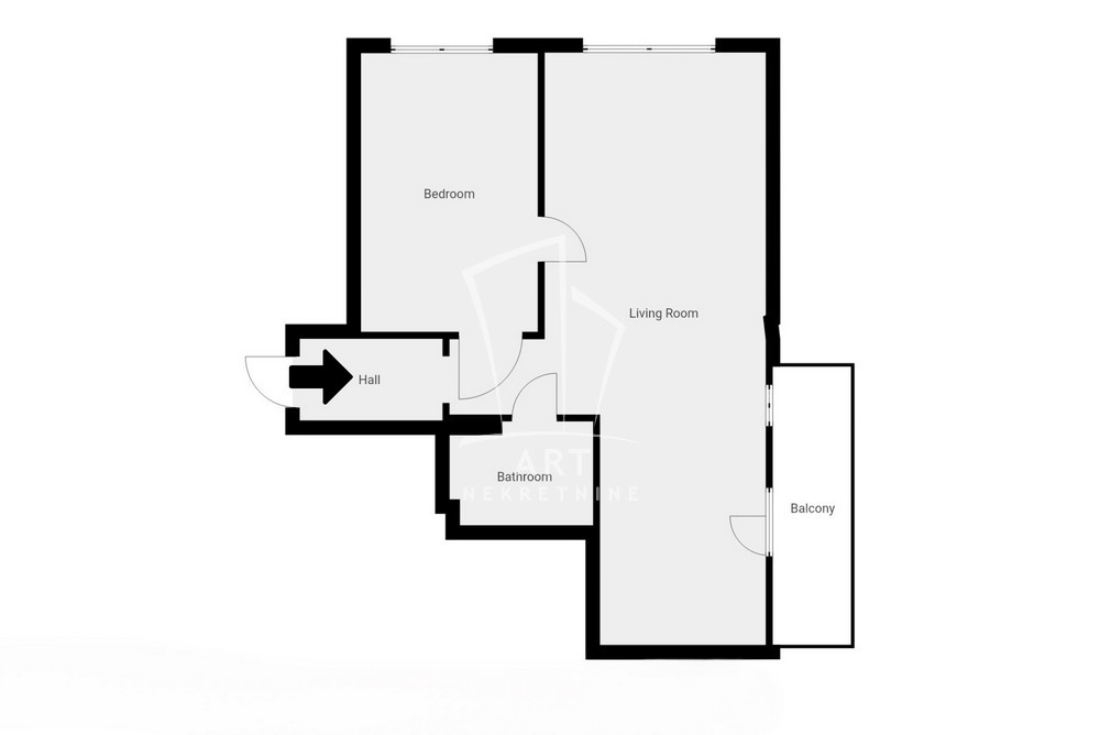 - ulazni antre, kuhinja sa trpezarijom i dnevnim boravkom otvorenog koncepta, prostrana spavaca soba, terasa, kupatilo.
