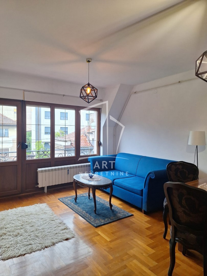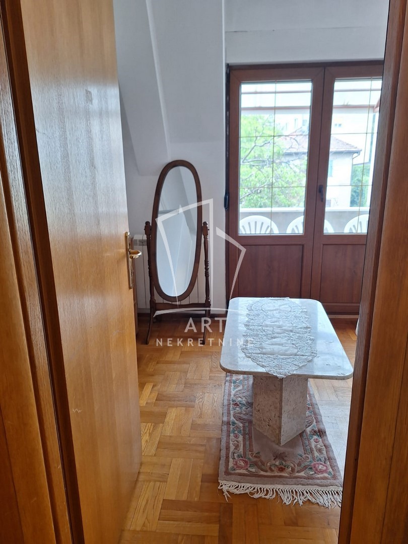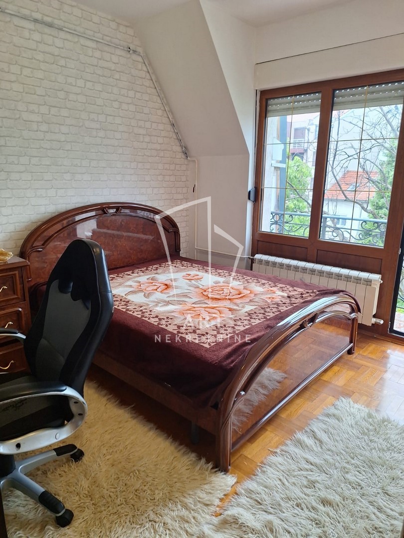 Izdaje se svetao i potpuno opremljen stan na odličnoj lokaciji na Vračaru. Sastoji se od ulaznog hodnika, dnevnog boravka sa kuhinjom, dve spavaće sobe, toaleta, kupatila i tri terase. Mogućnost zakupa garažnog mesta uz nadoknadu. Depozit u visini jedne mesečne zakupnine.