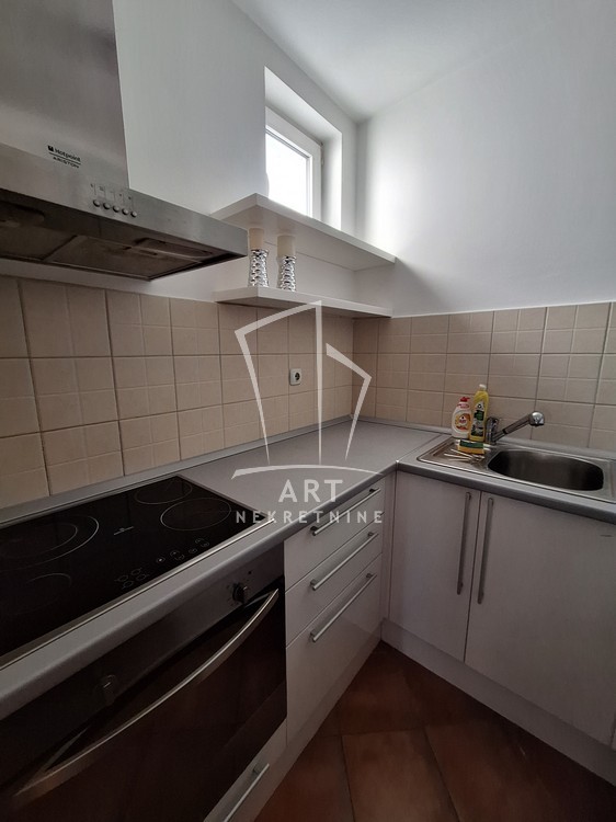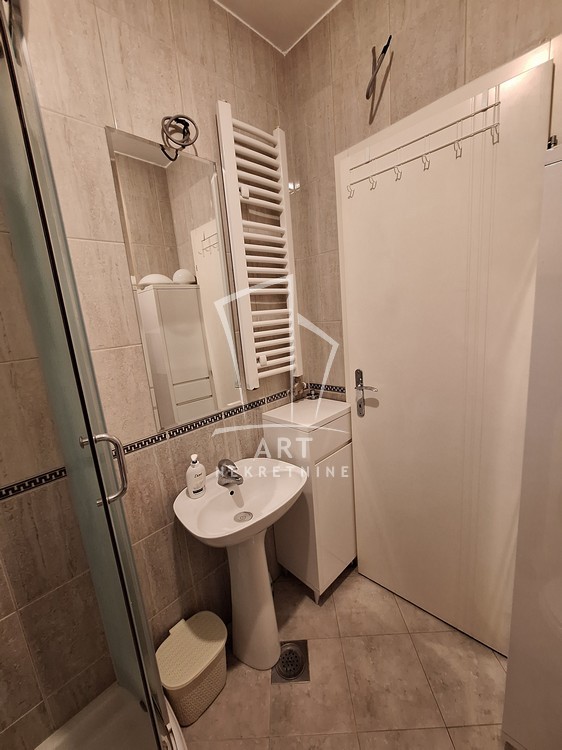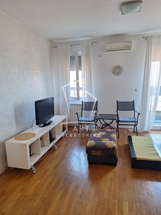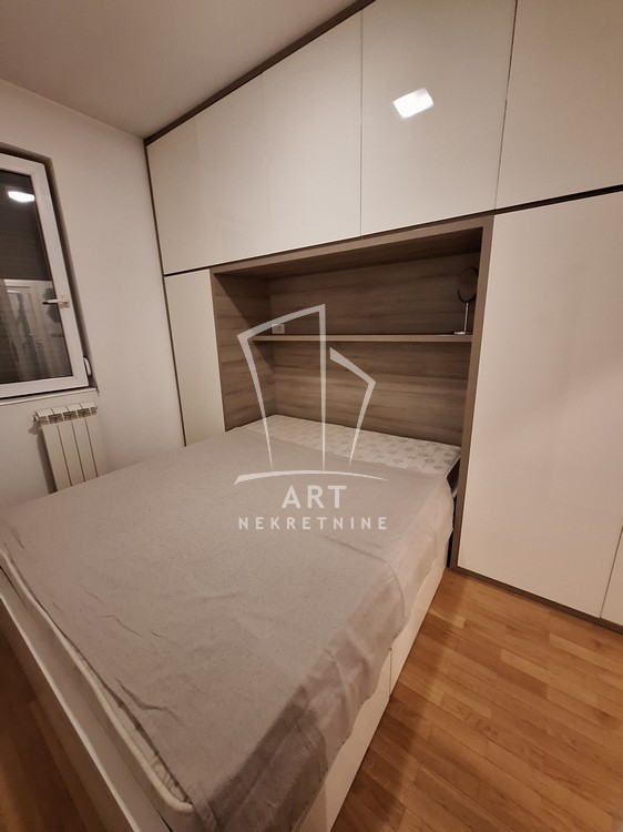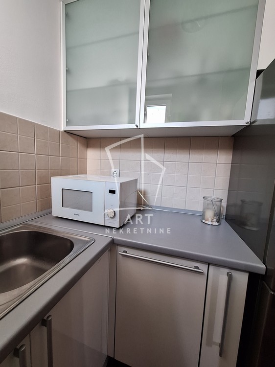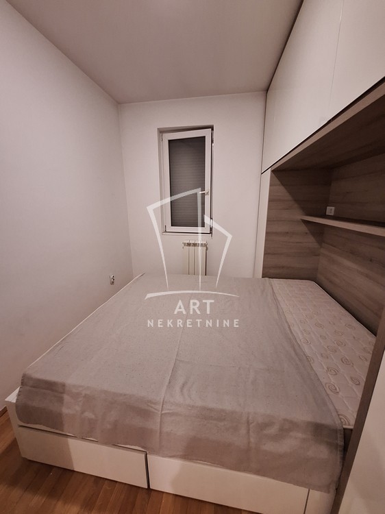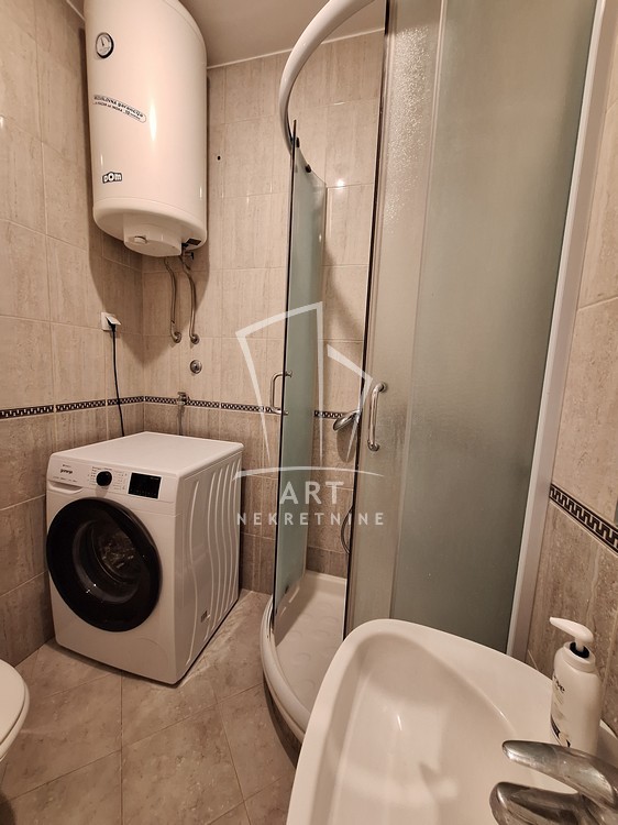 Potpuno opremljen, stan ima ulazno predsoblje sa ugrađenim cipelarnikom, odvojenu kuhinju, dnevni boravak sa trpezarijom, spavaću sobu sa velikim plakarom, kupatilo, veliku terasu i sve propratne uređaje neophodne za život (TV, sudo mašina, mikrotalasna, ugradna rerna, potpuno nova, nekorišćena veš mašina).