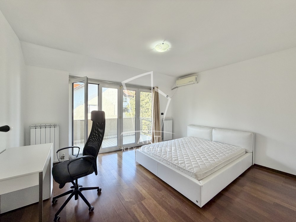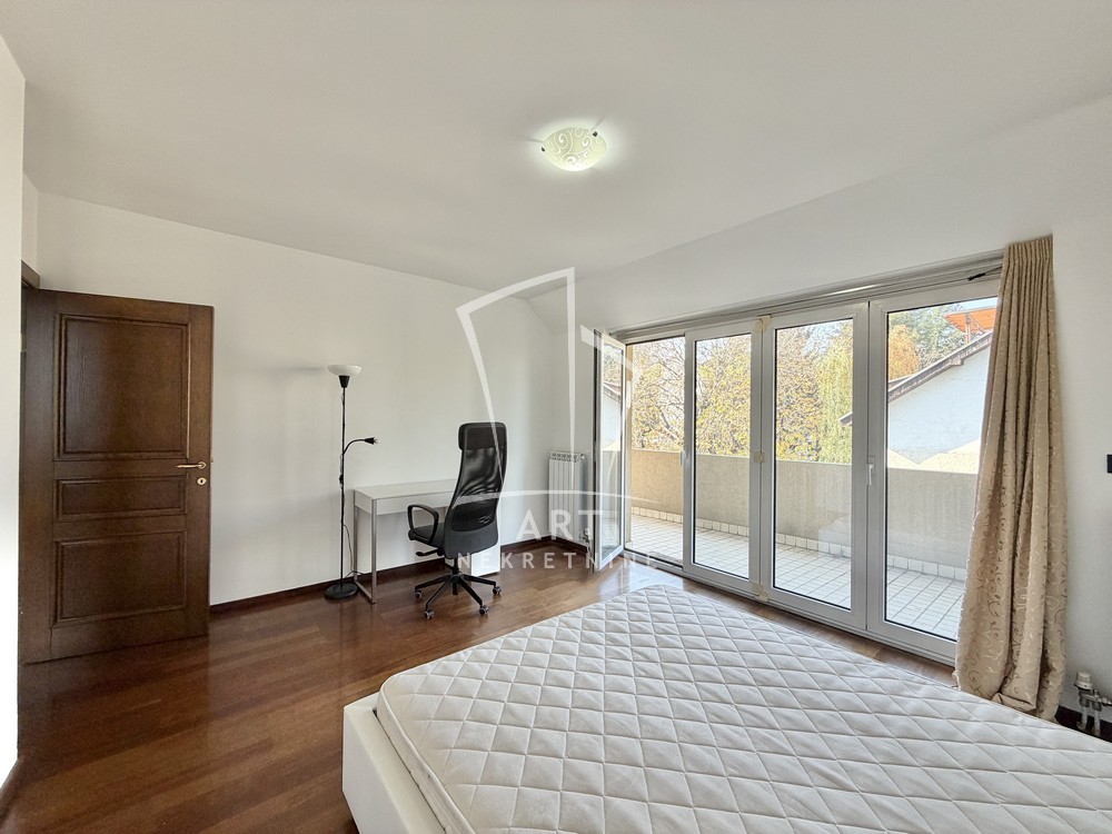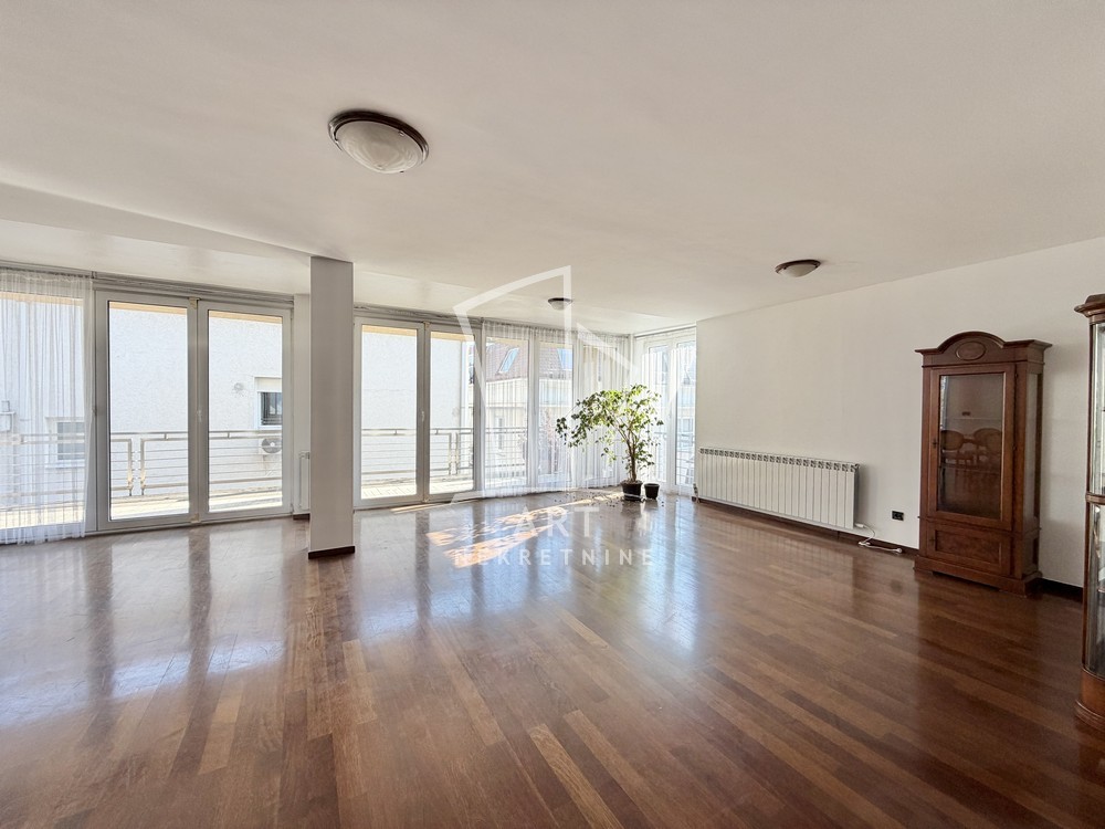 Kvalitetan 4.0 soban stan površine 210 m2. Stan je polunamešten sa mogućnošću da bude kompletno namešten ili prazan ( po dogovpru ). U stanu je kompletna kuhinja i ugrađeni plakari.