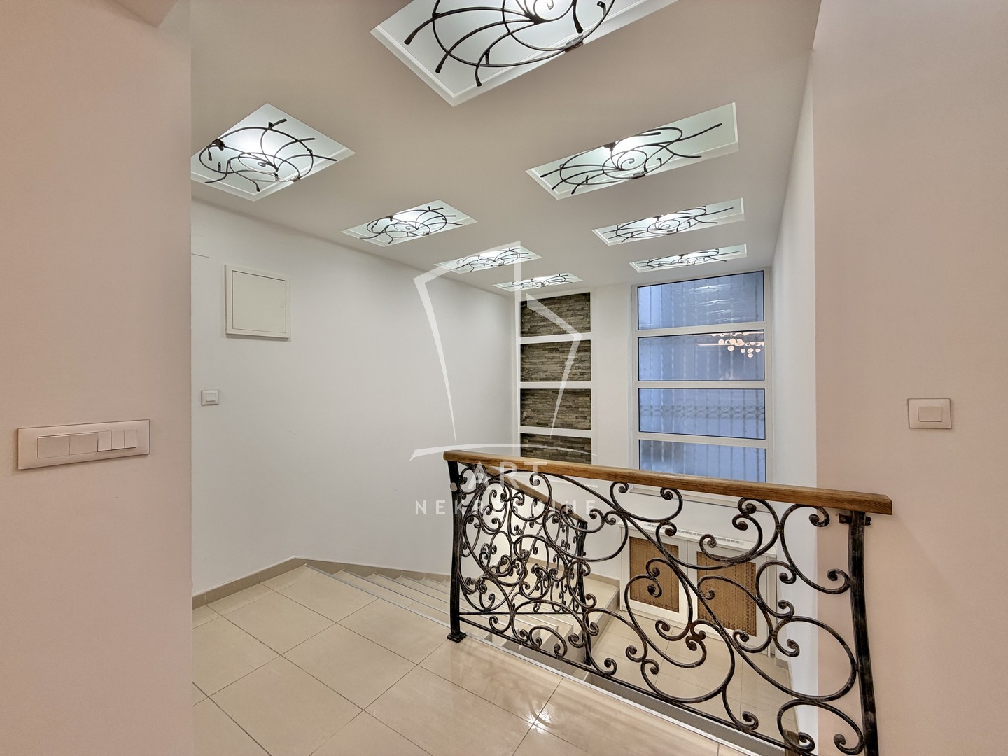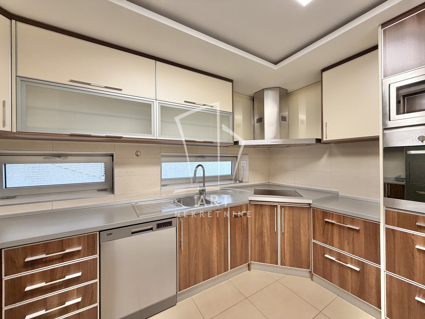 U donjem delu se nalazi garaža za dva automobila, ulaz u stan, veliki hodnik sa dosta mesta za odlaganje stvari, vešernica i kupatilo . Na drugoj etaži se nalazi velika dnevna soba sa trepezarijskim delom, odvojena velika kuhinja, tri spavaće sobe i kupatilo, sve tri sobe imaju izlaz na terasu. Stan ima zaseban ulaz. Prelepo, uređeno dvorište daje posebnu draž zgradi. Ulica iza zgrade je mirna i izolovana sa dosta parking mesta.