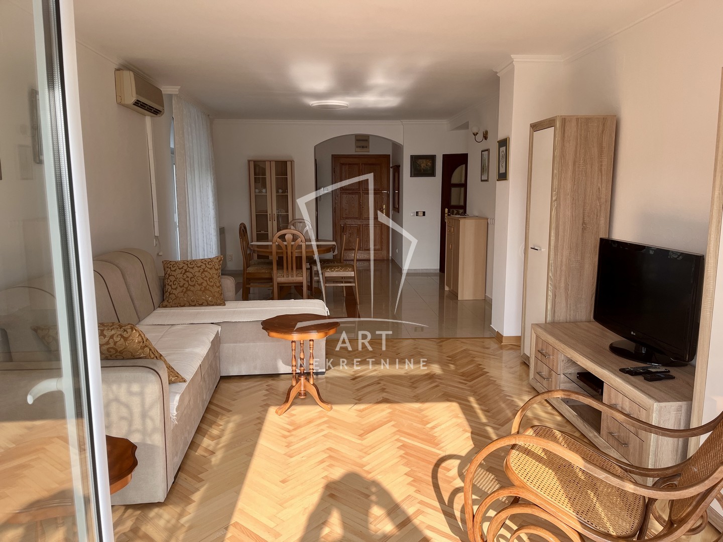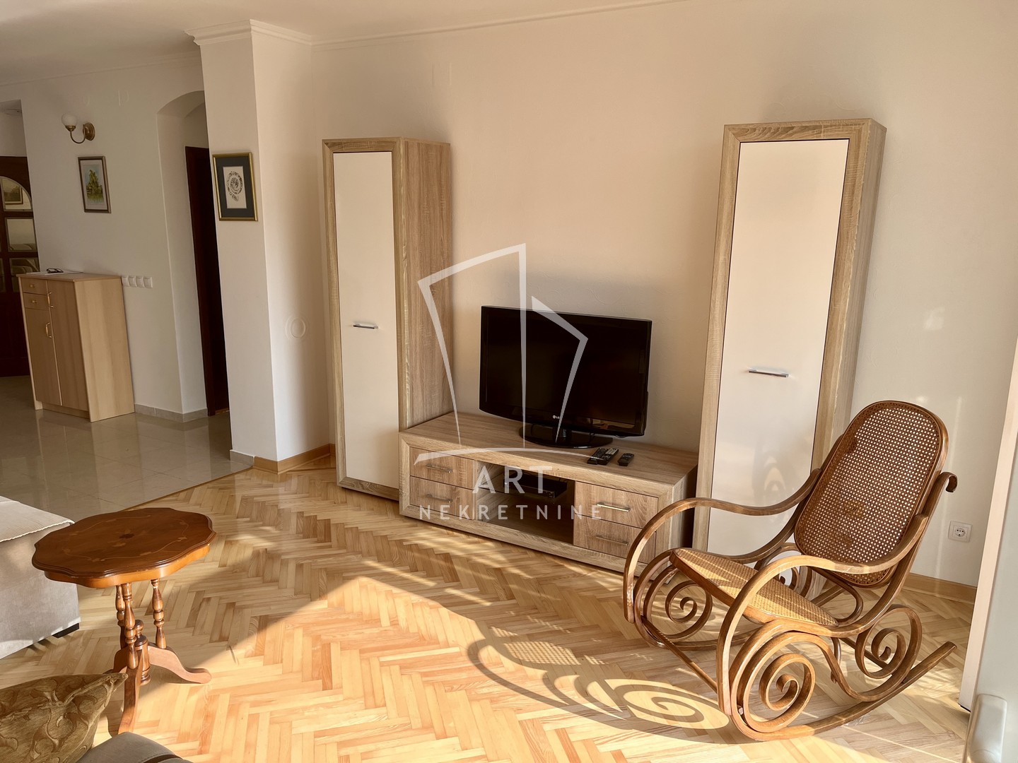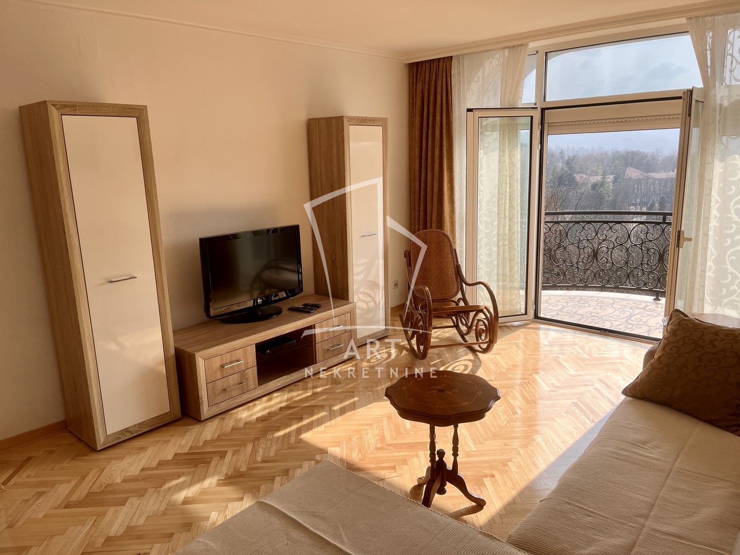Stan je u potpunosti namešten, ima dve spavaće sobe, dva kupatila i odmah je useljiv.
