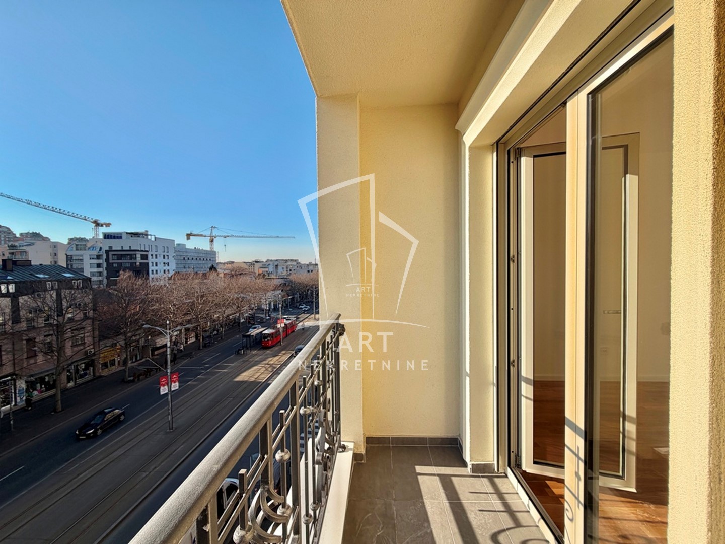 Na jednoj od najboljih lokacija u gradu, na Bulevaru Kralja Aleksandra, u blizini Đeram pijace, sa dve terase, dve spavaće sobe, izgrađeni od najkvalitetnijih materijala, reč je o novogradnji.