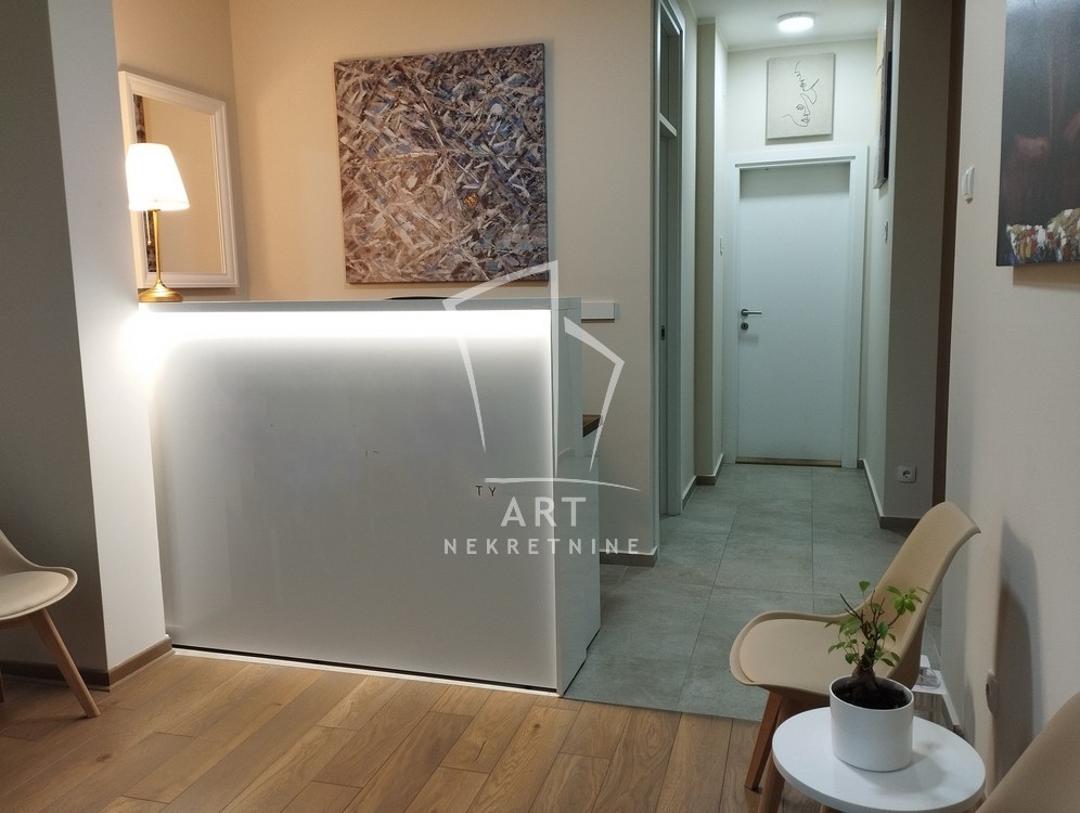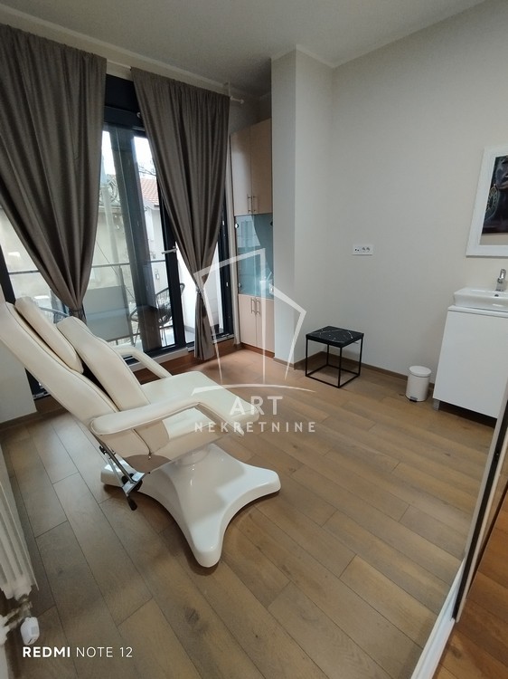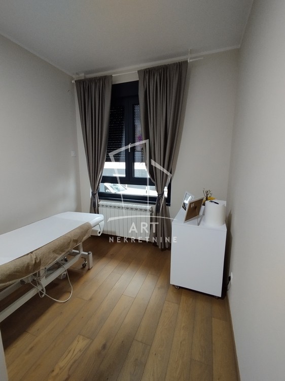 Na uglu Đevđelijske ulice i ulice Branka Krsmanovića, na visokom prizemlju, nalazi se stan od 52m2 namenjen za "salon za negu lepote" jer se u njemu nalaze dva stola za tretmane i masažu, kao i stolica za istu namenu.
