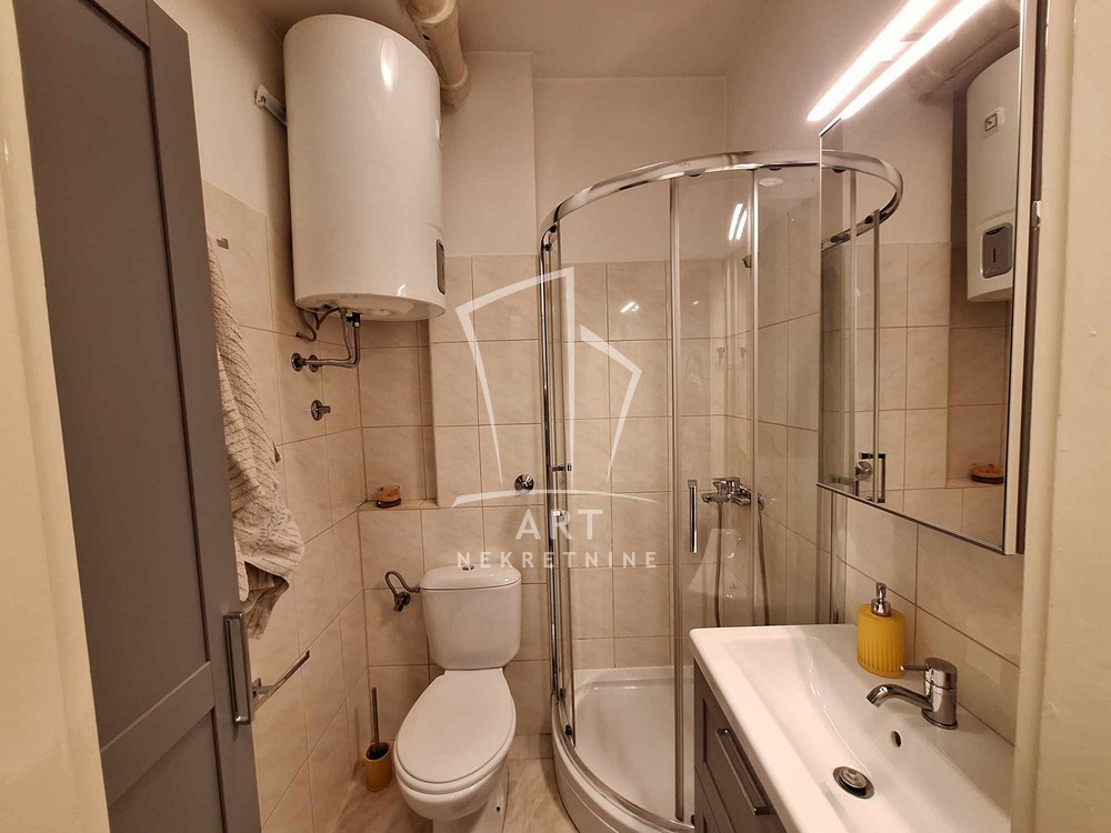 U našoj ponudi za izdavanje na prvom spratu u urednoj i održavanoj zgradi sa liftom i video nadzorom. Stan je 1.5 strukture, namešten, renoviran na Dorćolu u ulici Kralja Petra. Mereno 43m2.