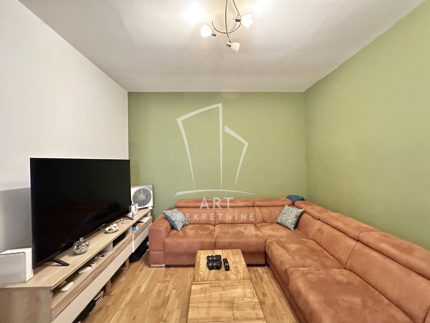 Stan se sastoji od dnevne sobe sa kuhinjom i trpezarijom, spavaće sobe i kupatila.