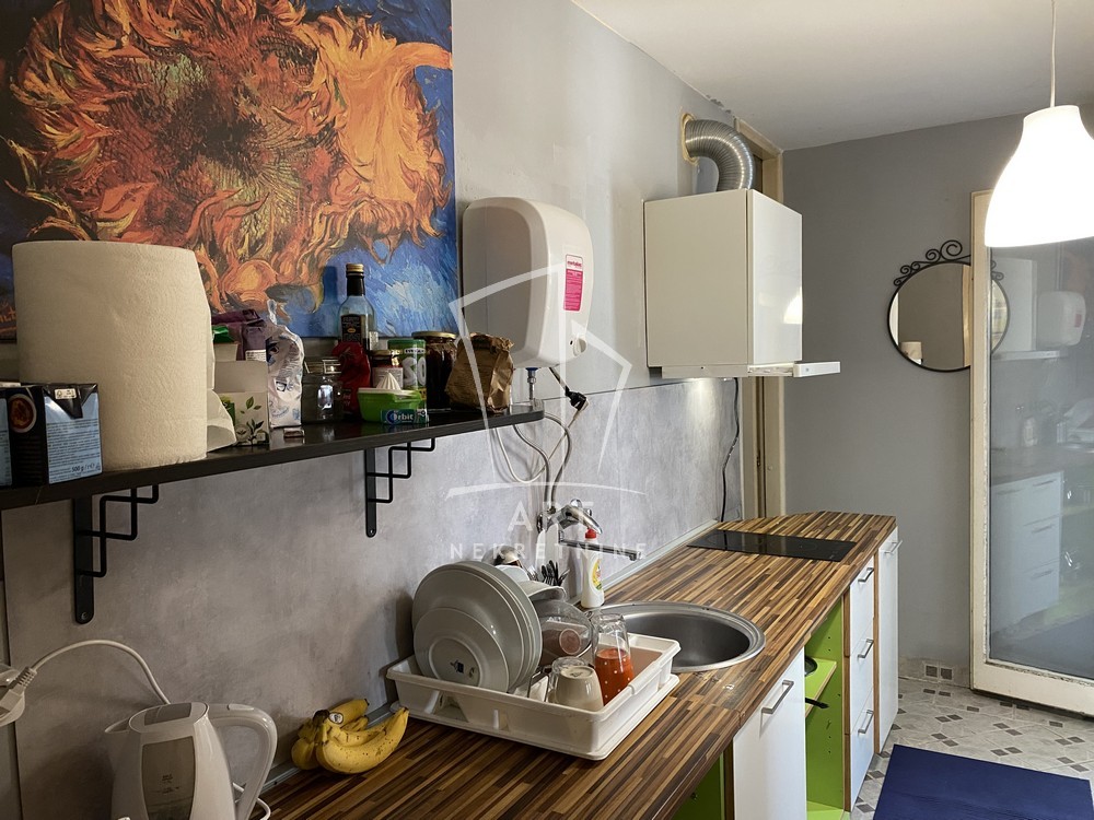 Prostorije: antre, dnevna soba, kuhinja, trpezarija, dve spavaće sobe, lođa, kupatilo i toalet.