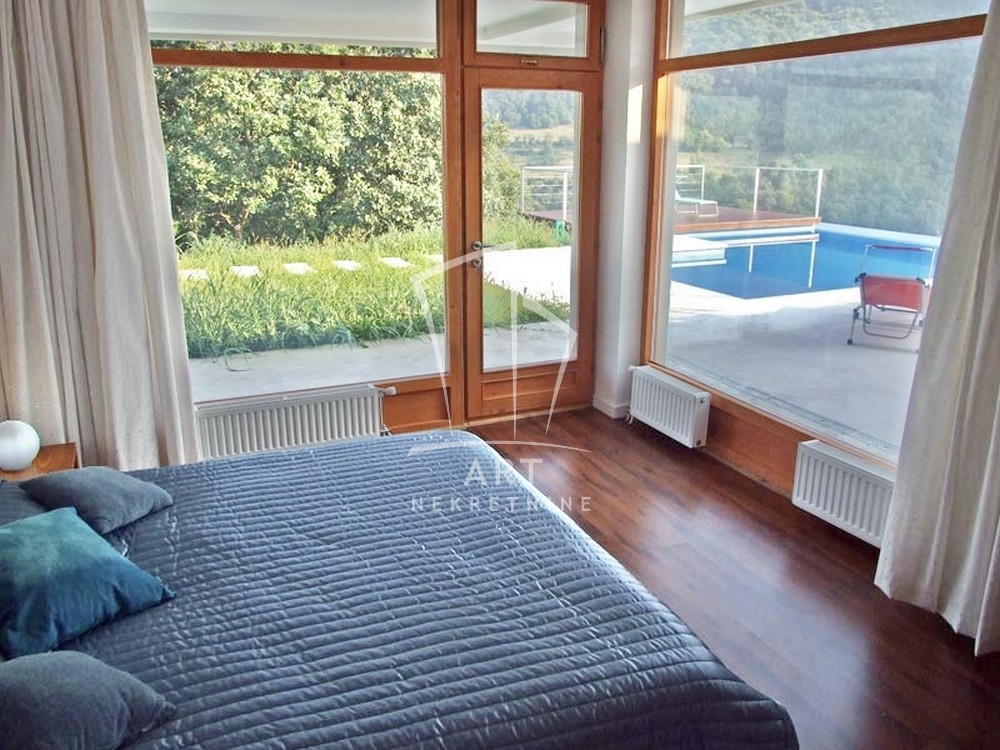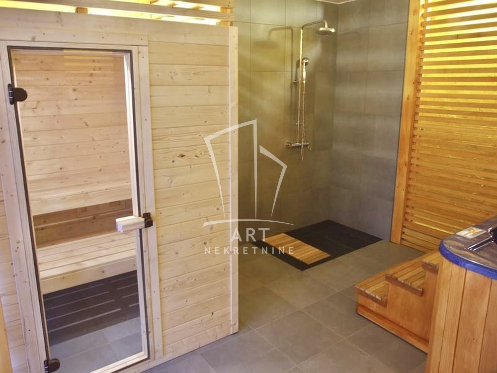 Nalazi se na prostranom imanju od 60 ari. Površina kuće je 396 m2 i pažljivo je osmišljena za uživanje i relaksaciju. Sastoji se od: