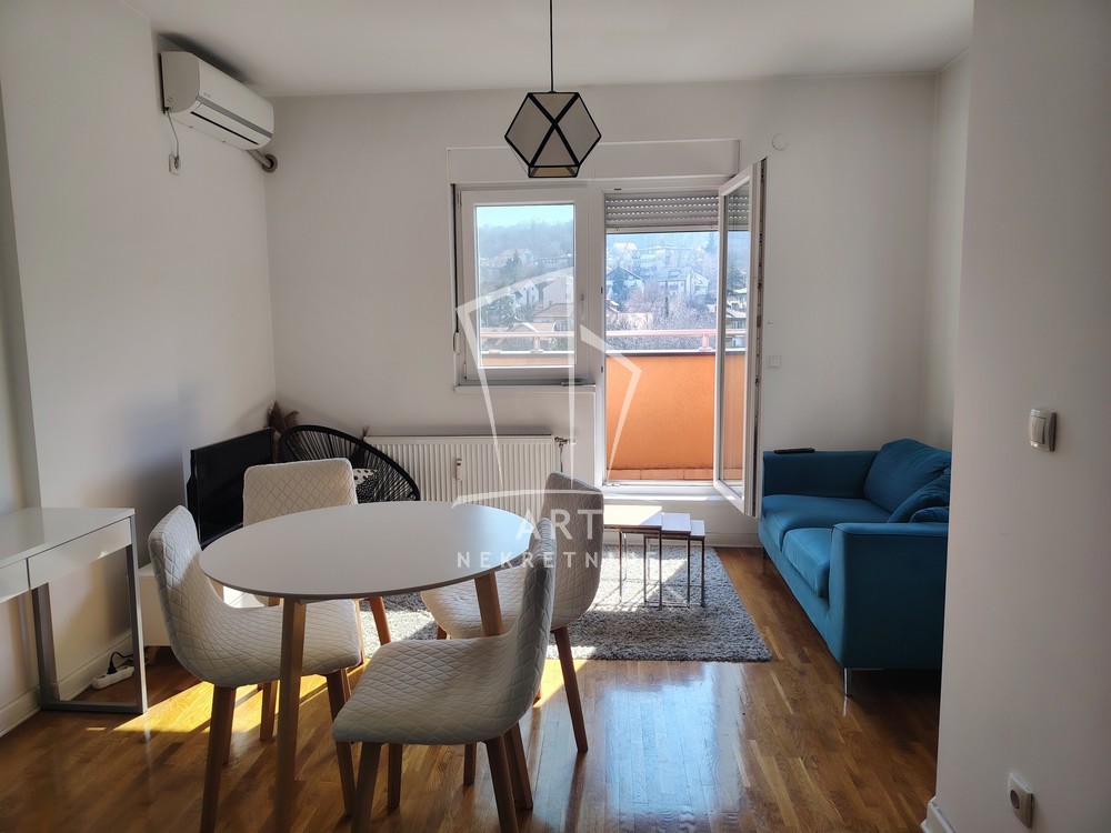 Izuzetno svetao, namešten stan na odličnoj lokaciji na Karaburmi u kompleksu Dunavske terase.
