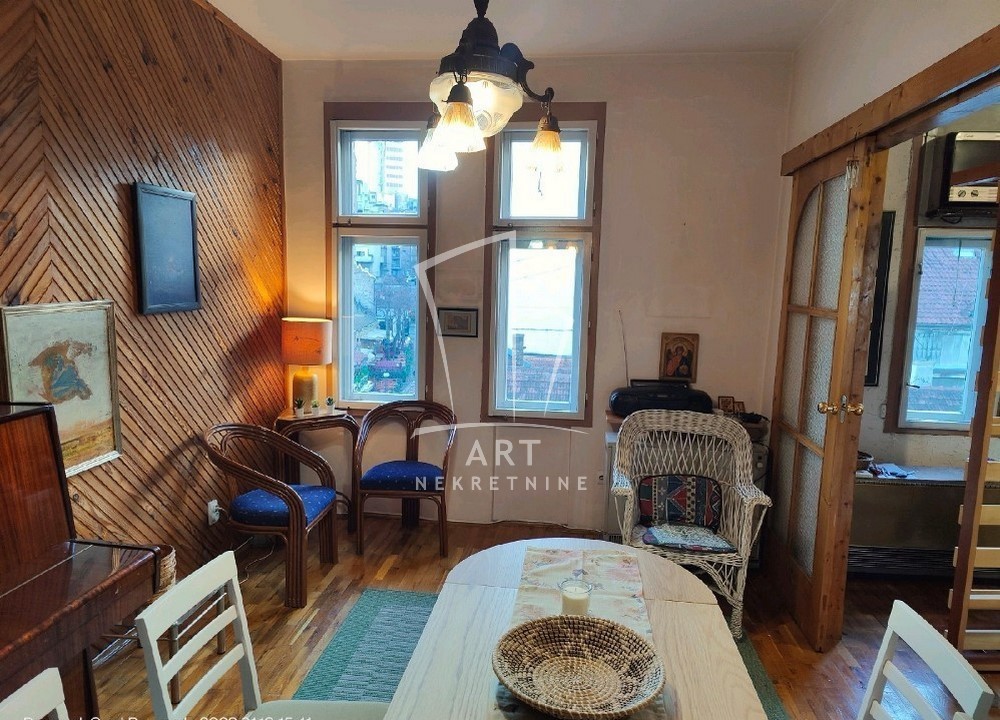 U jednoj od najlepših ulica na Dorćolu, nalazi se ovaj duplex koji se sastoji od dve spavaće sobe, dnevnog boravka, trpezarije i kuhinje.