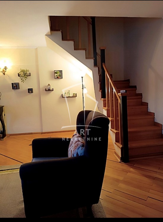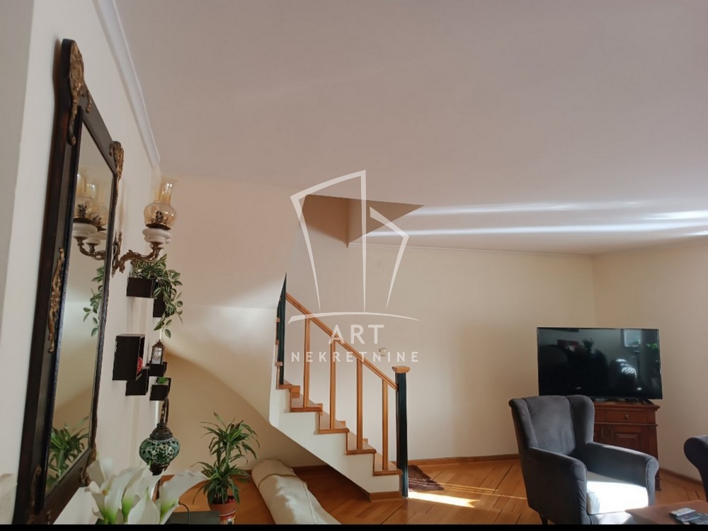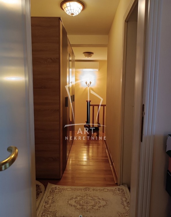Na gornjem nivou se nalaze 3 komforne sobe, veliko kupatilo, terasa i predsoblje u kojem se nalazi garderober.