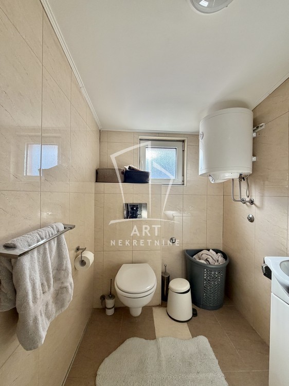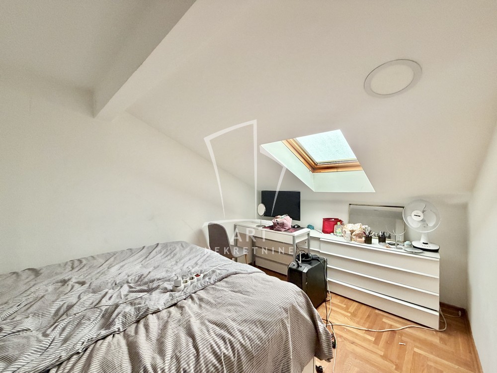 Gornja etaža (33 m2 korisne površine): Mirna zona za odmor sa dve spavaće sobe, predsobljem i drugim kupatilom. Zahvaljujući pametnom rasporedu i osnovi od 52 m2, prostor je maksimalno iskorišćen i funkcionalan.