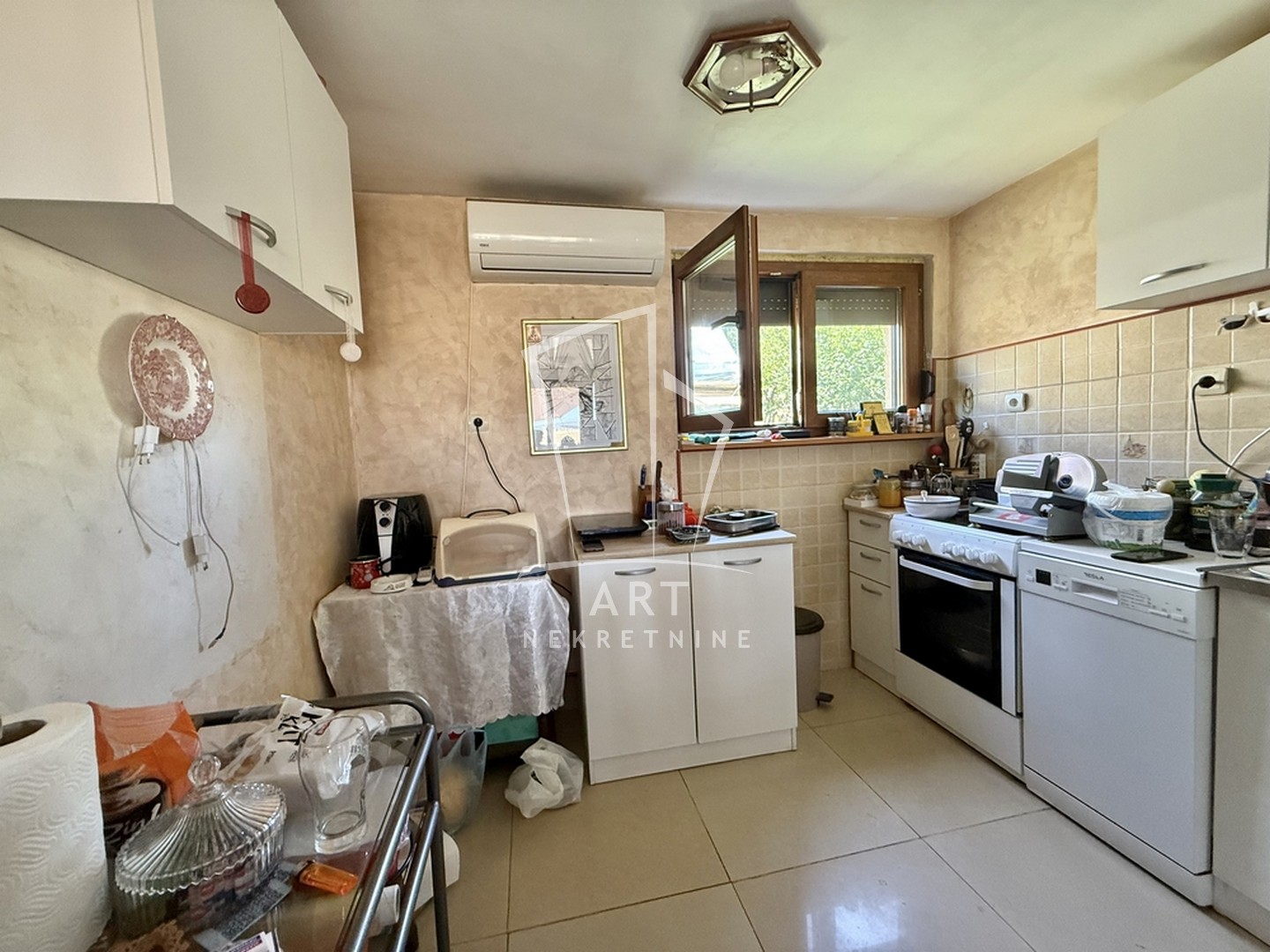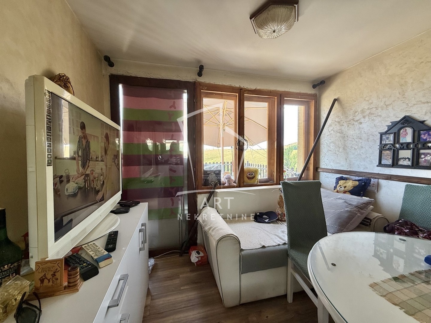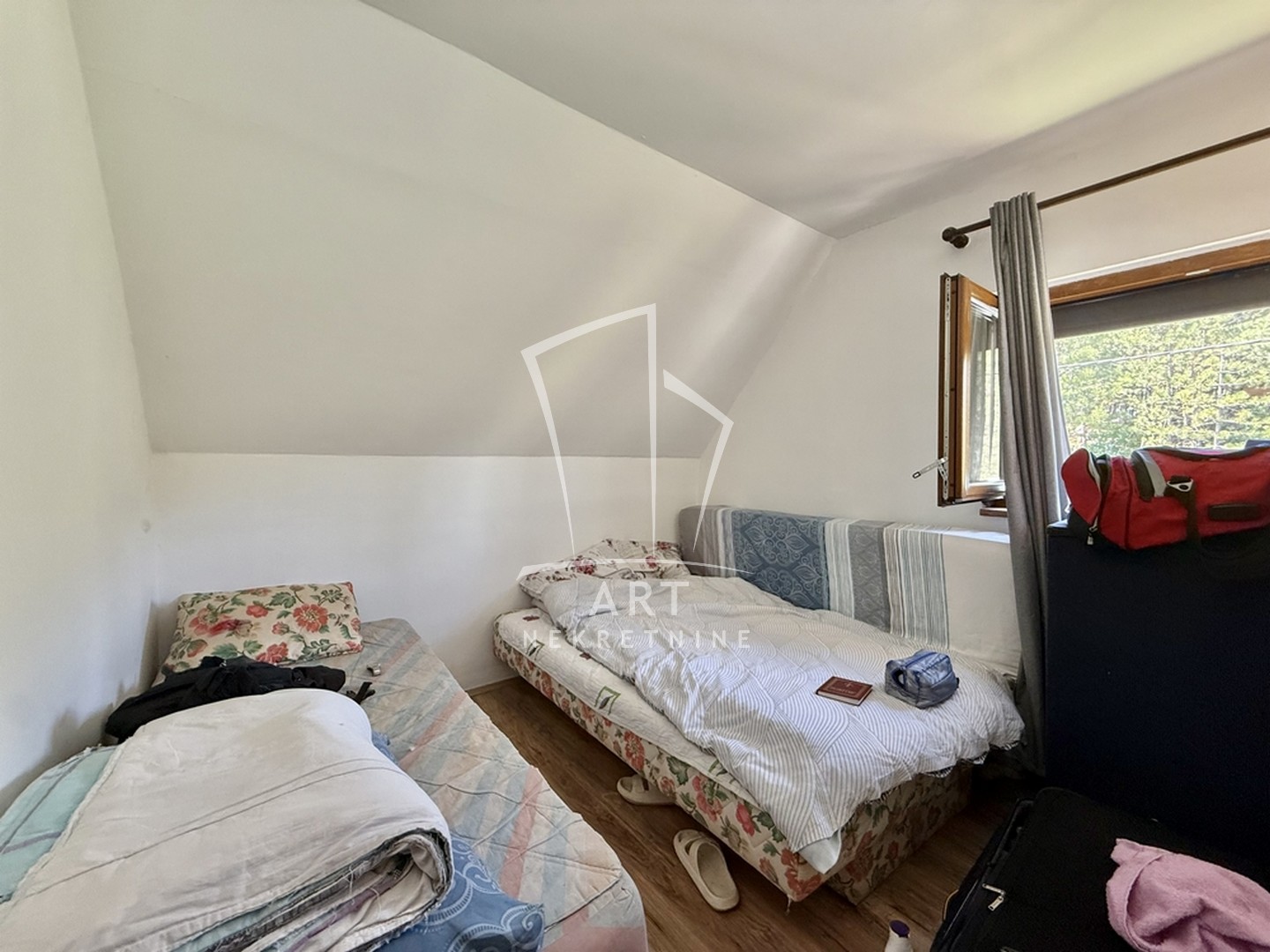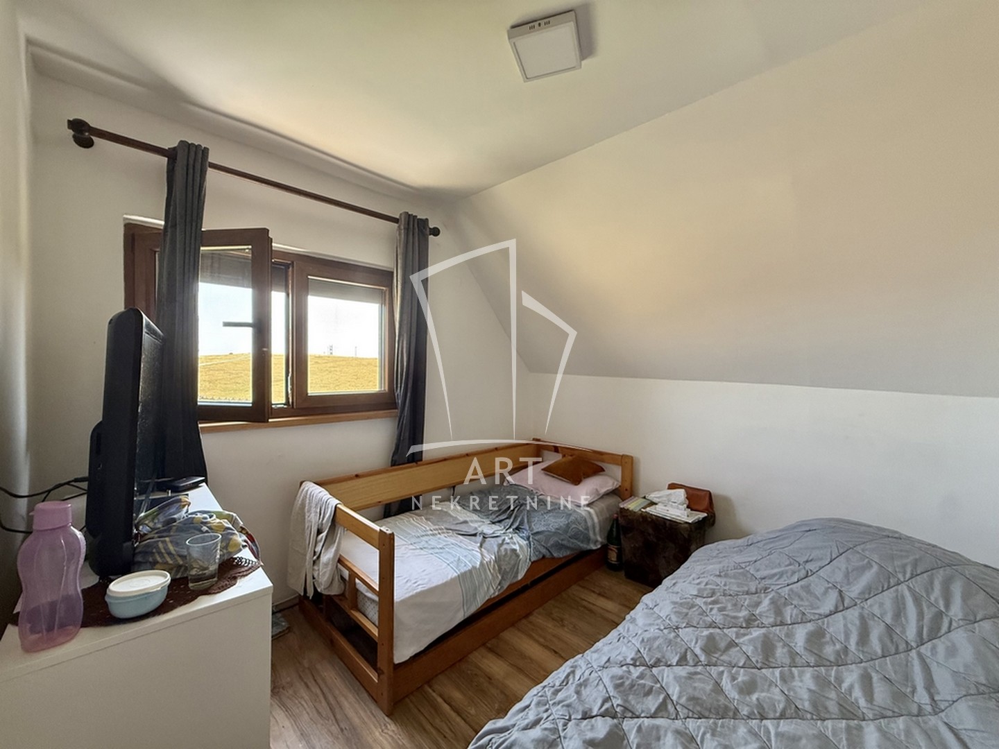 U prizemlju se nalazi dnevni boravak, kuhinja sa trpezarijom, kupatilo i prostrana terasa, dok su na spratu smeštene dve spavaće sobe i toalet.