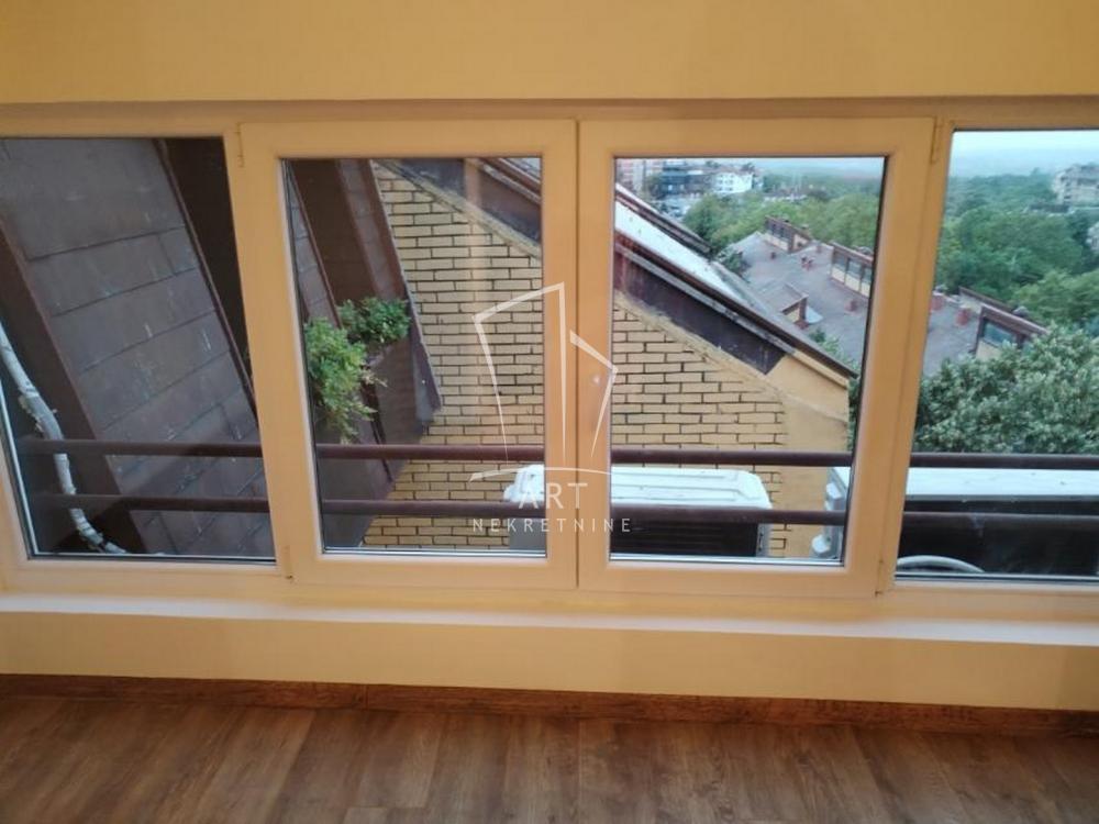 Prostorije: predsoblje iz koga se ulazi u sve prostorije, prostrani dnevni boravak sa kuhinjom i trpezarijom (open planed koncept) i izlazom na zastakljenu lođu, tri spavaće sobe (jedna veća i dve manje), gostinski toalet, kupatilo i galerija od 24m2 koja nije ušla u kvadraturu.