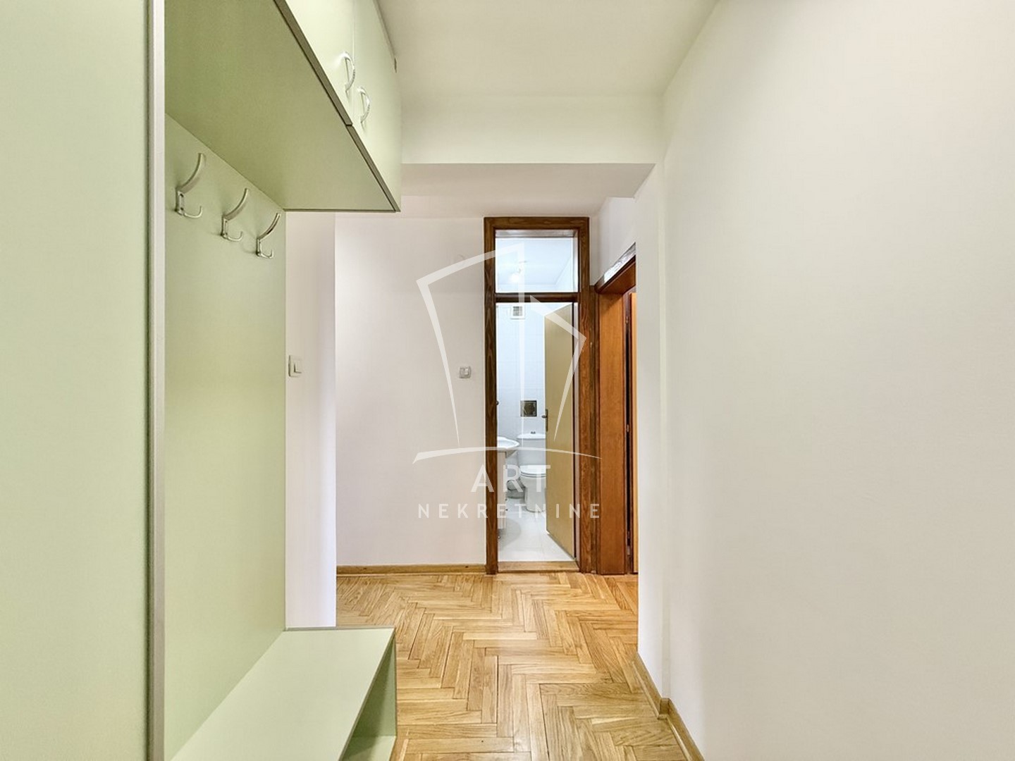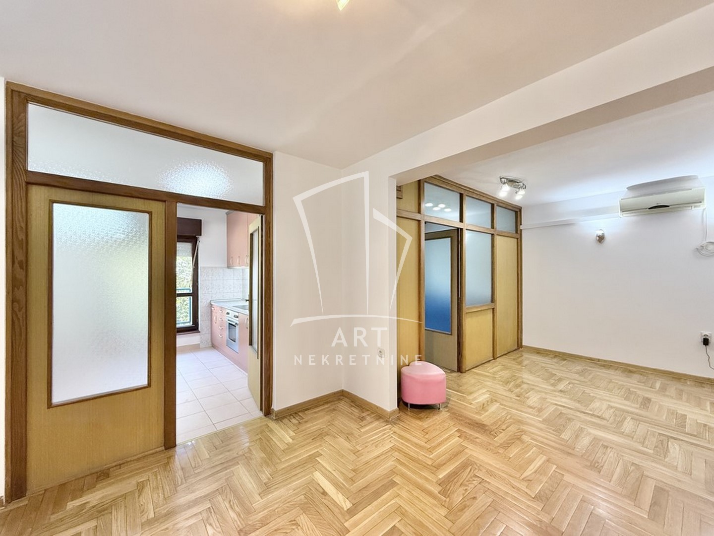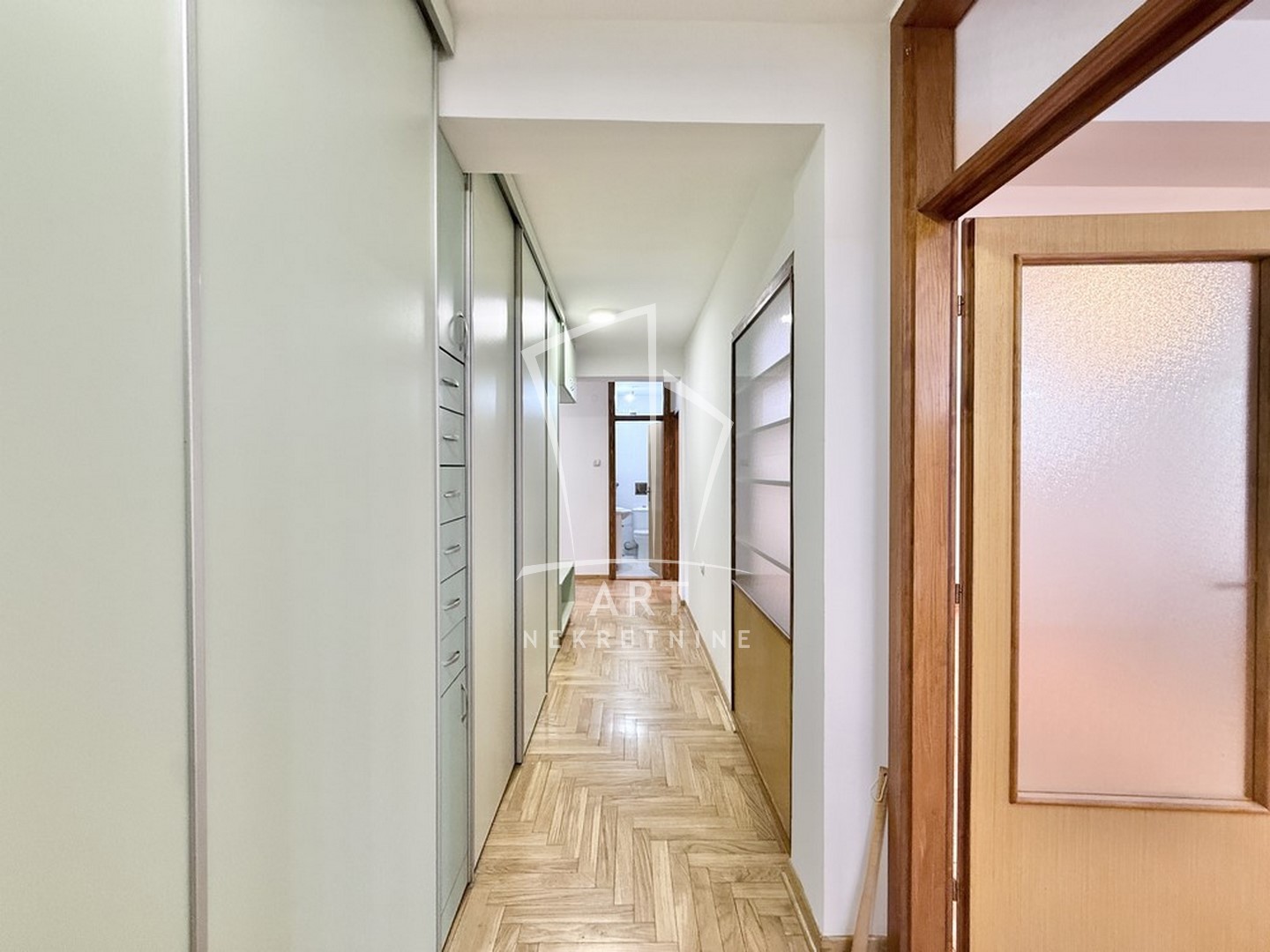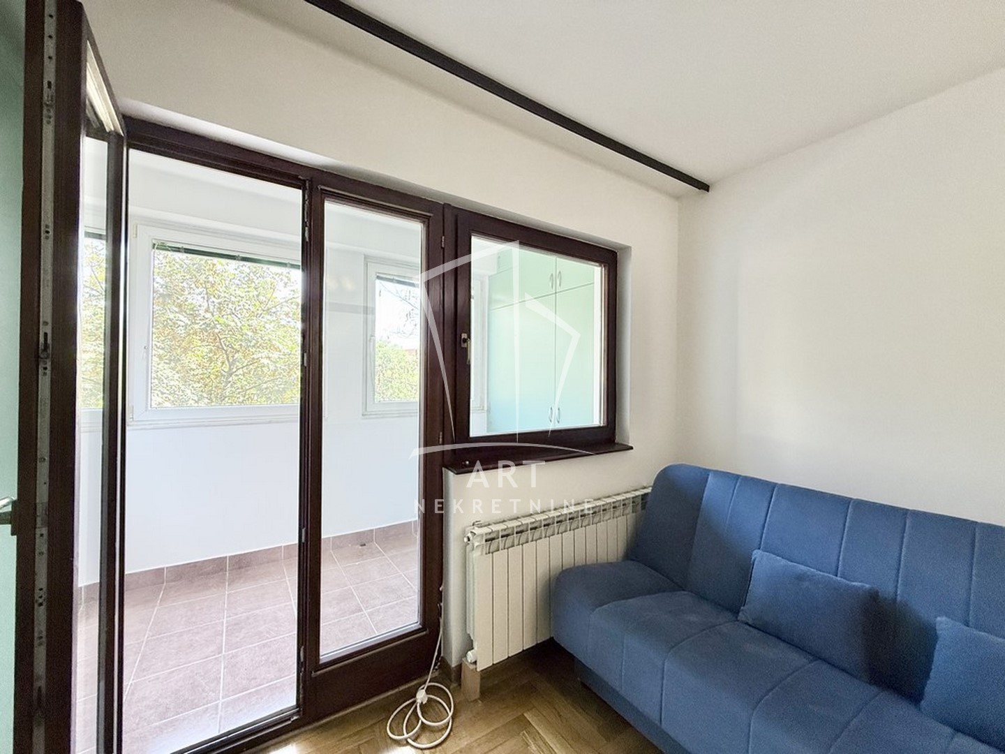 U kuhinji i jednoj spavaćoj sobi postoji francuski balkon. Na podu je parket, aluminijumski radijatori, centralno grejanje, lift u zgradi, optički internet.