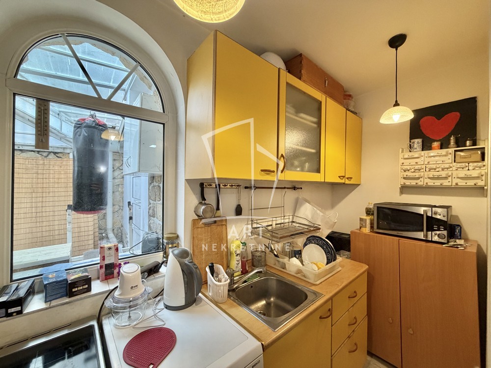Na prvom nivou se nalazi praktično zasebna jedinica sačinjena od prostrane sobe, kuhinje, kupatila i ostave. Ima sopstveni izlaz na zadnje dvorište u kome se nalazi letnja-otvorena kuhinja i garnitura za sedenje.