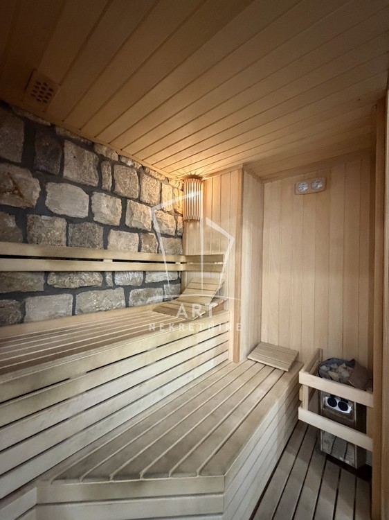 Na istom nivou se nalazi prostor za rekreaciju sa bazenom, saunom, teretanom i sopstvenim kupatilom.